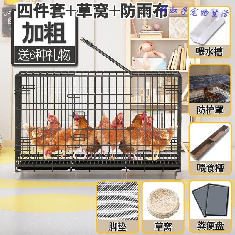 梦雷宠 鸡笼子家用养鸡笼大号特大号自动清粪折叠养殖笼鸡舍铁丝网鸭狗笼 加粗款套餐三 加粗加固130*60*70(适合7-10只