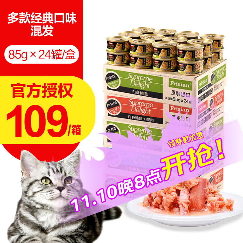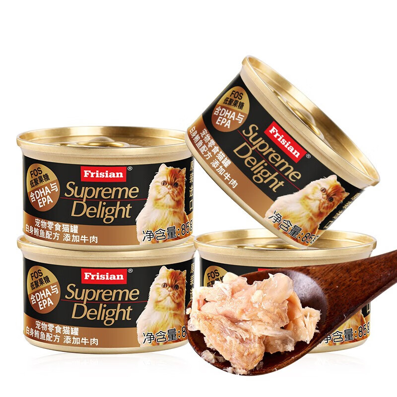 富力鲜(frisian)猫罐头 鲔鱼罐头 成猫幼猫通用猫咪零食 湿粮拌粮 多款口味随机(85g*24罐)5连箱装