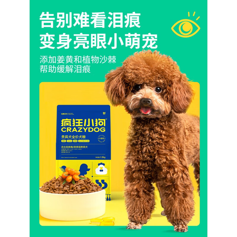 疯狂小狗贵宾/泰迪专用狗粮1.5kg小型犬天然粮幼犬成犬3斤全价粮 贵宾/泰迪专用粮 1.5kg
