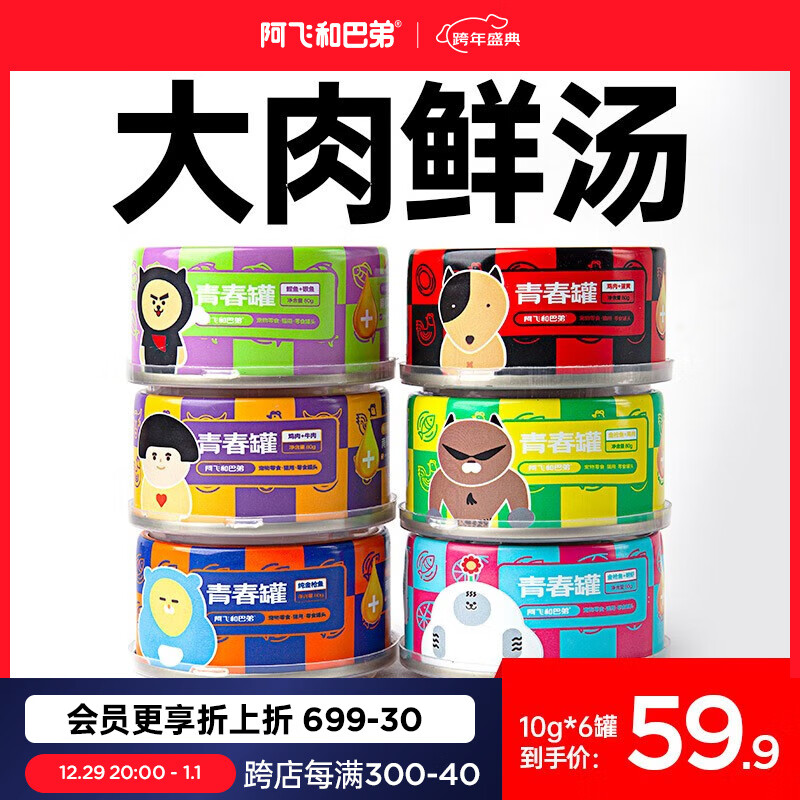阿飞和巴弟猫罐头青春罐80g*6猫咪发腮营养零食罐头 鸡肉 牛肉80g*6