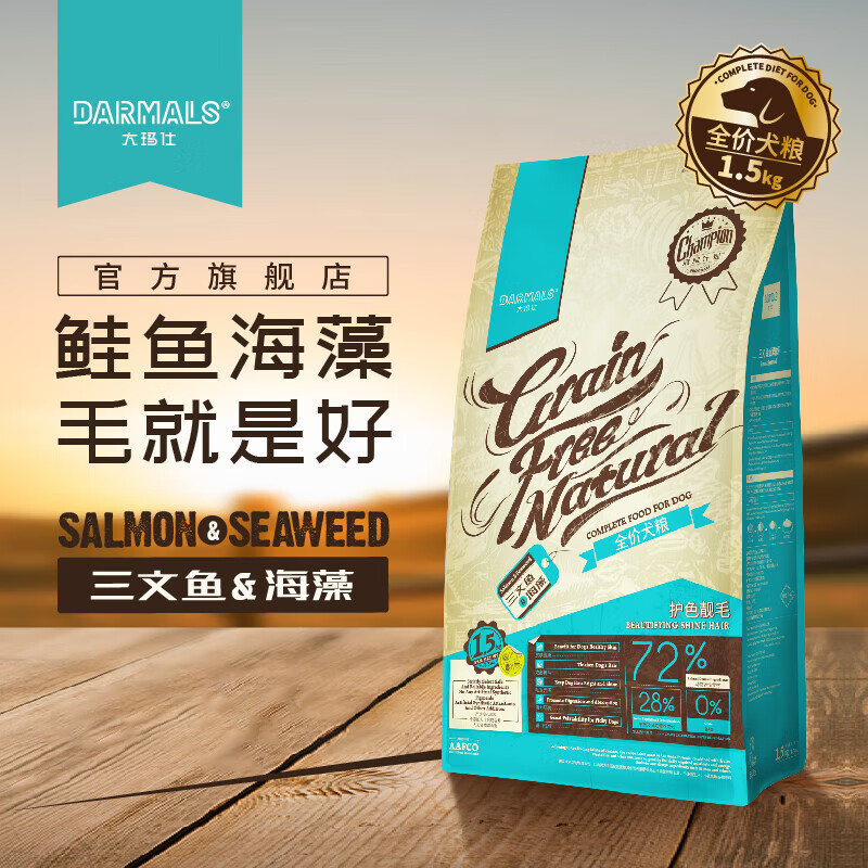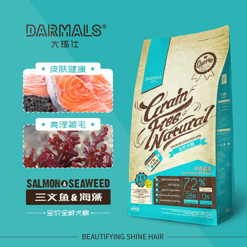 DARMALS大玛仕狗粮成犬幼犬中型犬通用狗主粮金毛泰迪哈士奇萨摩耶全价宠物犬粮 【滋养毛发】三文鱼