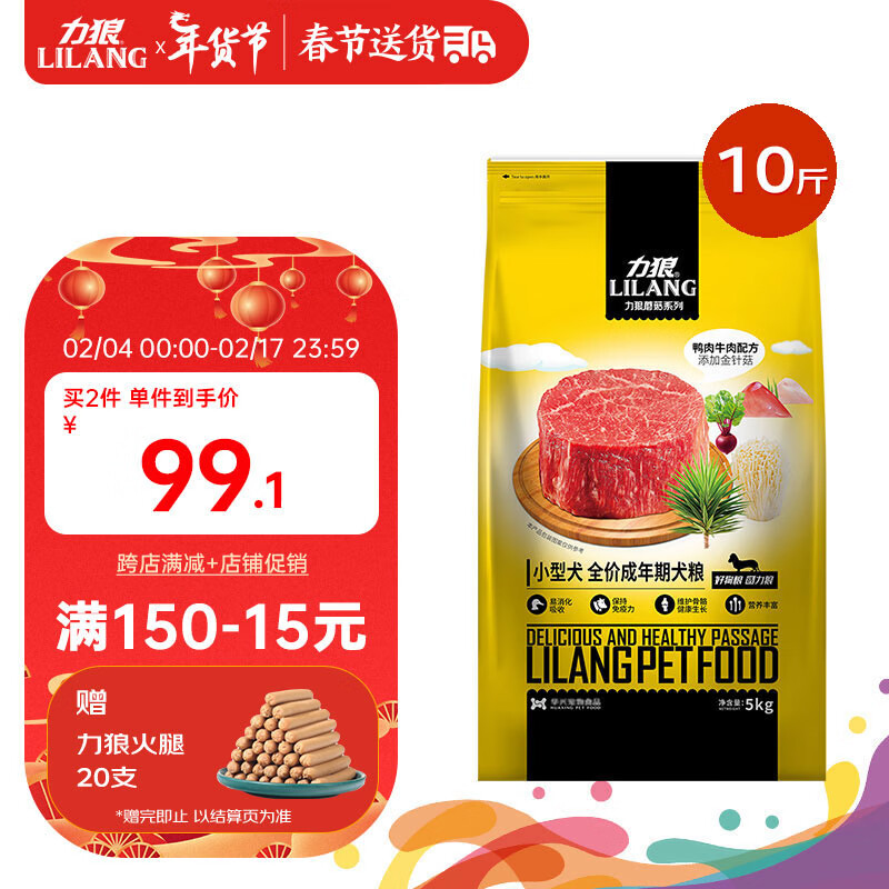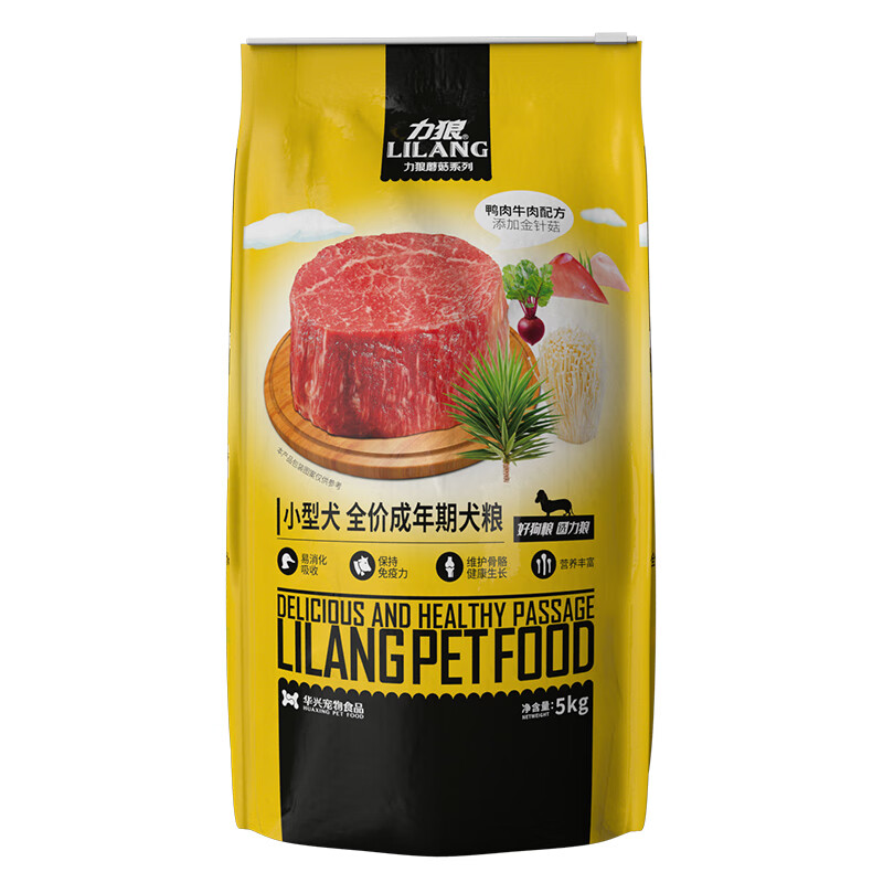 力狼(LILANG)狗粮 柯基阿拉斯加金毛泰迪通用型金针菇牛肉卷味 成犬粮5kg