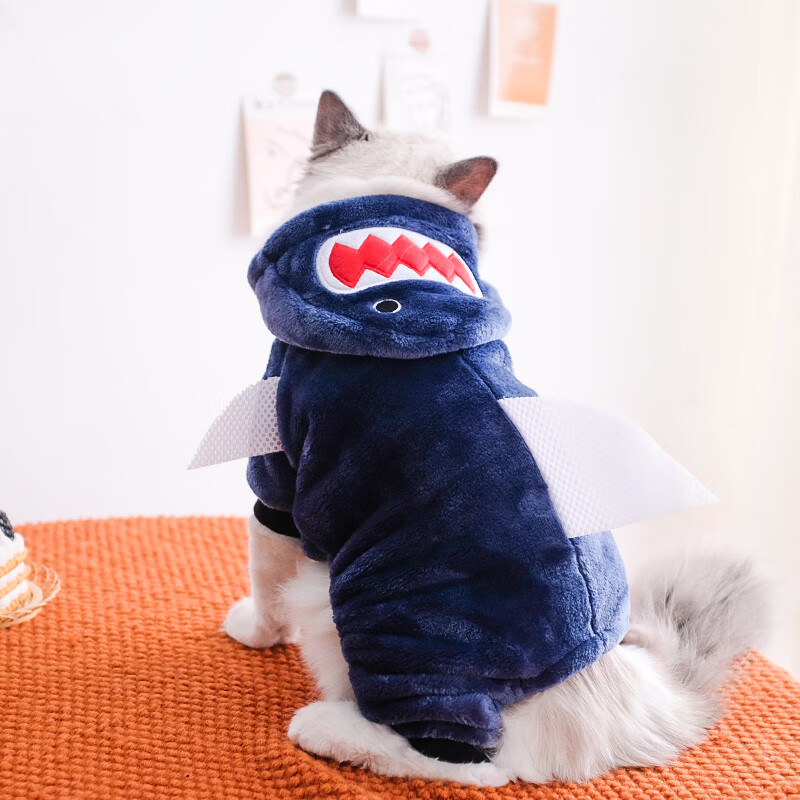 虹弦见网红猫咪衣服冬装冬季可爱四脚保暖秋冬小猫猫宠物幼猫防掉毛冬天 宠物鲨鱼四脚衣 M(建议6-8斤,用透明胶即可将衣物或沙发上的猫处