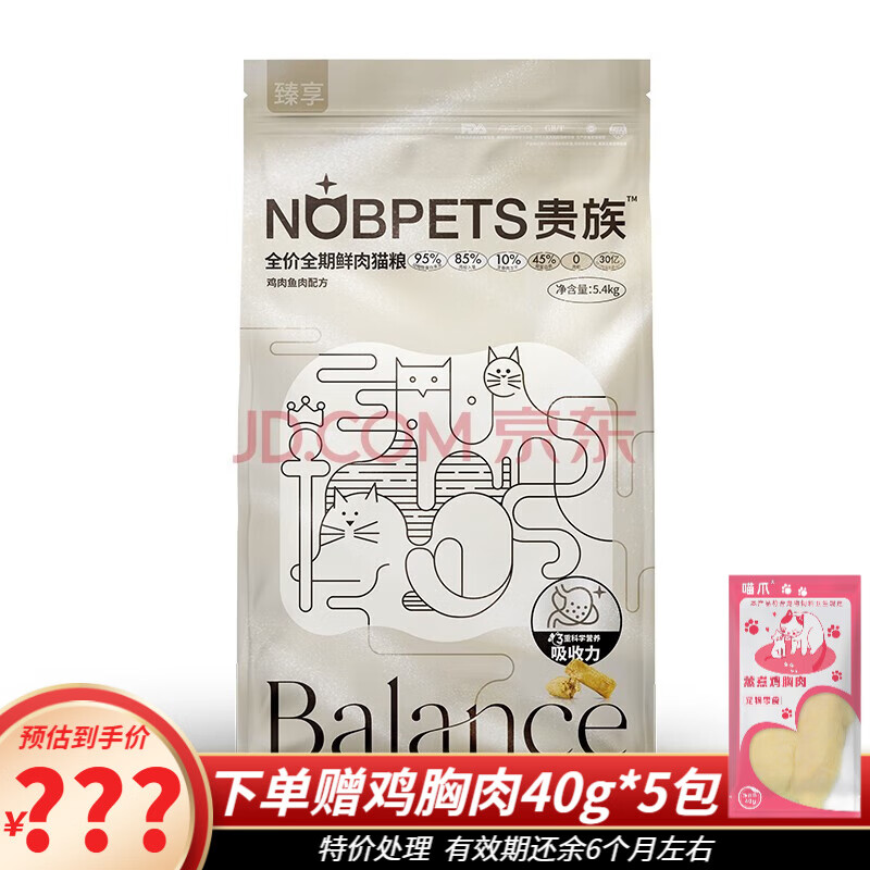 贵族猫粮 臻享系列 成幼猫全价全期鸡肉鱼肉猫干粮 添加10%冻干生骨肉 鸡肉鱼肉配方5.4kg-0肉粉