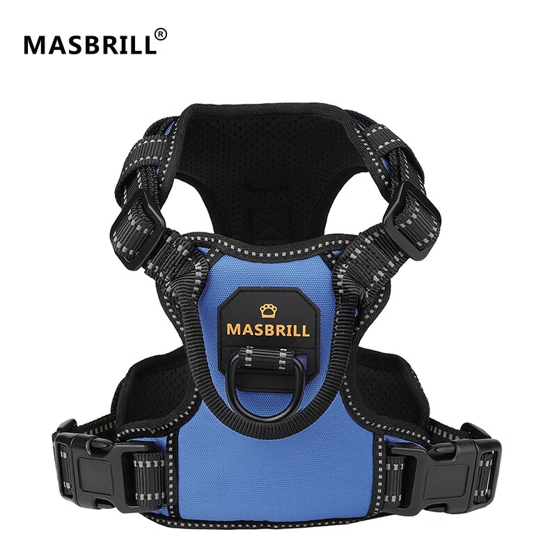 玛思贝瑞(MASBRILL)狗狗胸背带 可调节松紧背心式狗绳牵引绳 小大型犬金毛柴犬泰迪拉布拉多 深蓝色 M 适用胸围58-76cm