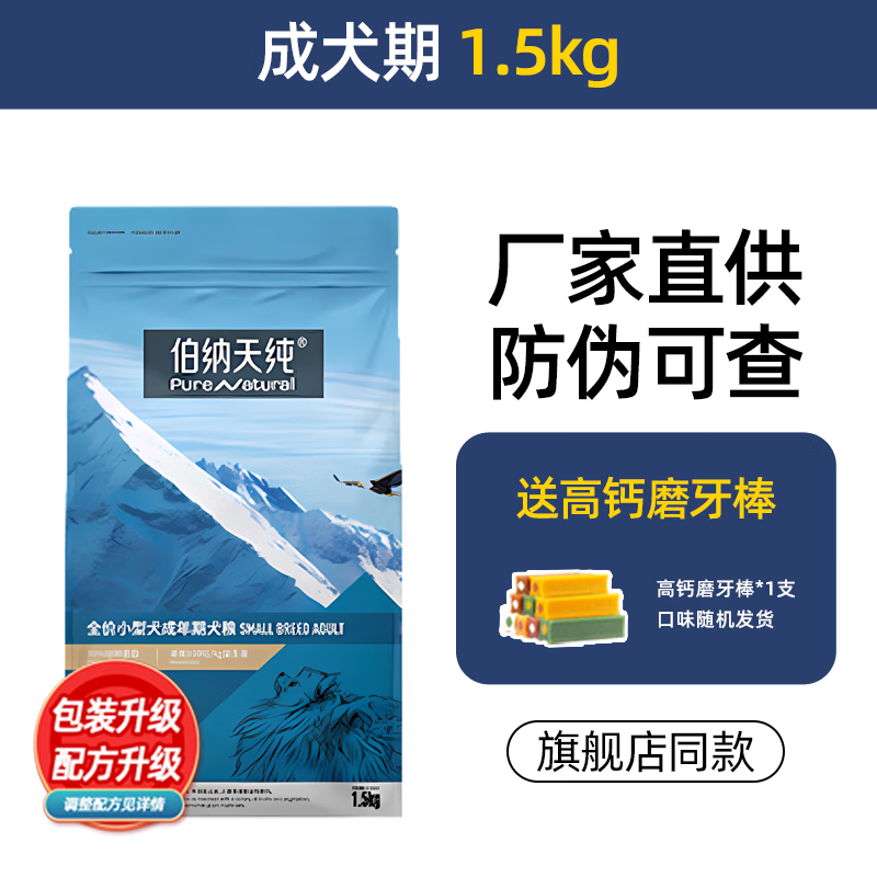伯纳天纯狗粮幼犬粮试吃小型犬专用成年期泰迪比熊成犬去泪痕博 1.5kg-成犬期【防伪可查可积分 0lb按拍下为准