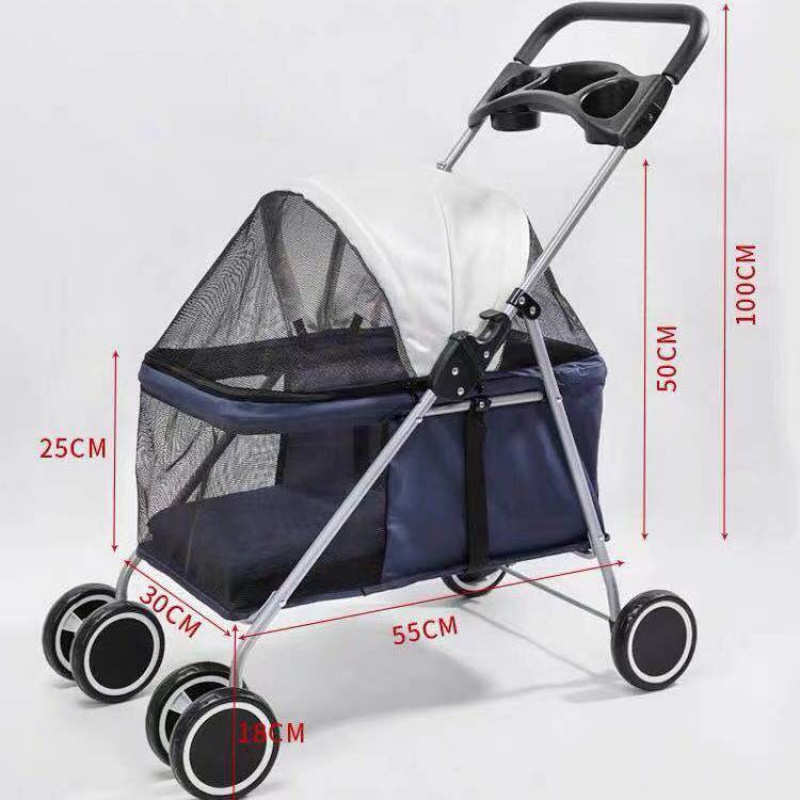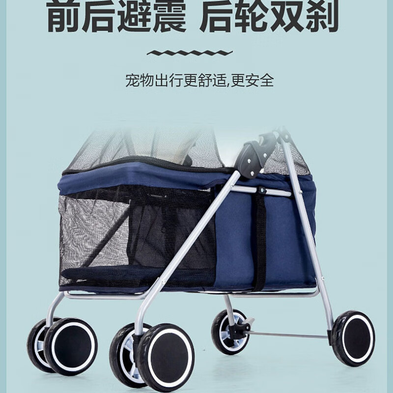 轻便可折叠宠物手推车狗狗猫咪中型小型犬猫咪外出推车四轮手推车 深蓝色【雨罩 水壶 凉席】 DTC-807