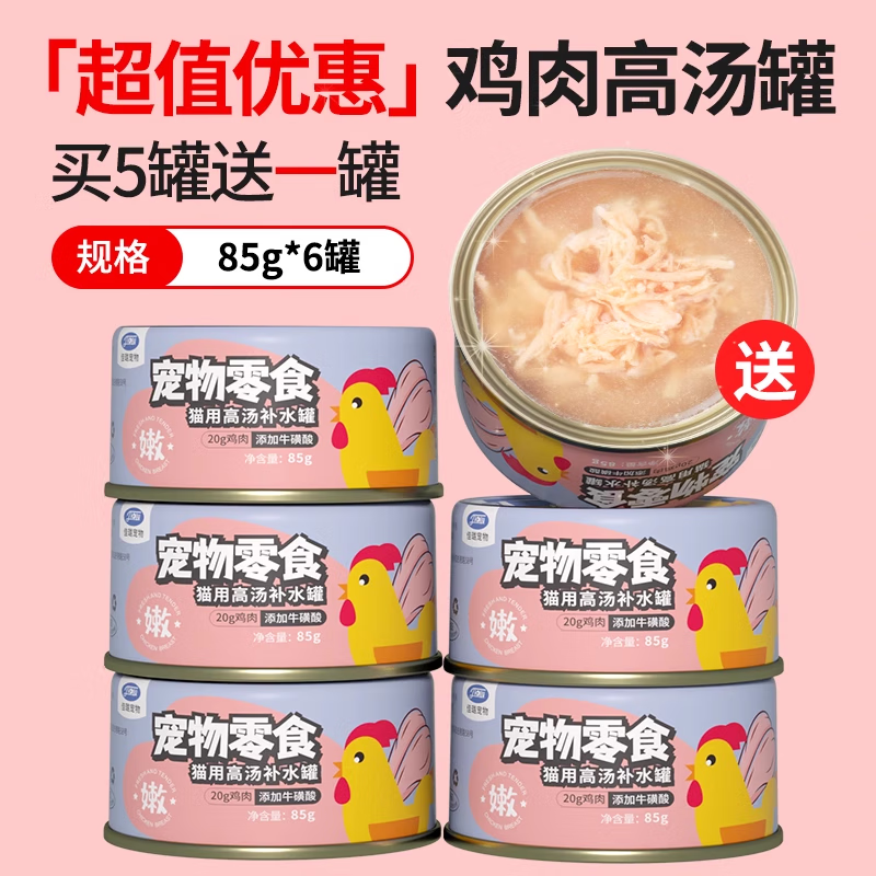 森森佳璐猫罐头白肉高汤补水罐鸡肉金枪鱼配方营养成幼猫零食增肥湿粮 【新客专享日限20单】鸡肉味6罐 高汤补水 85G/罐