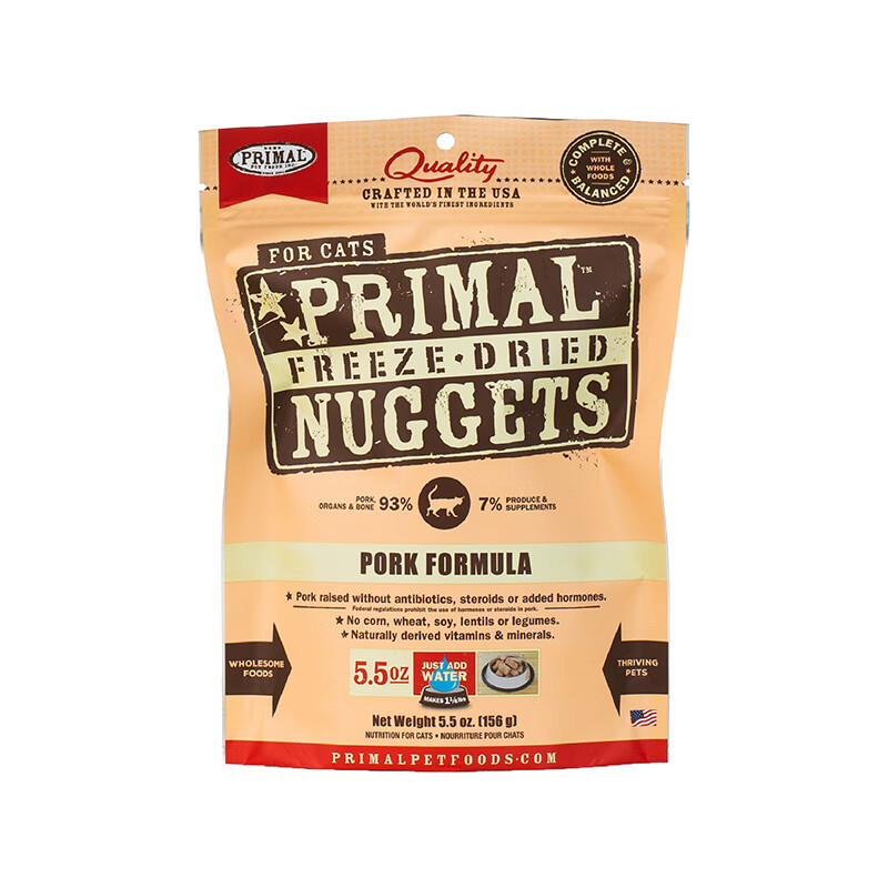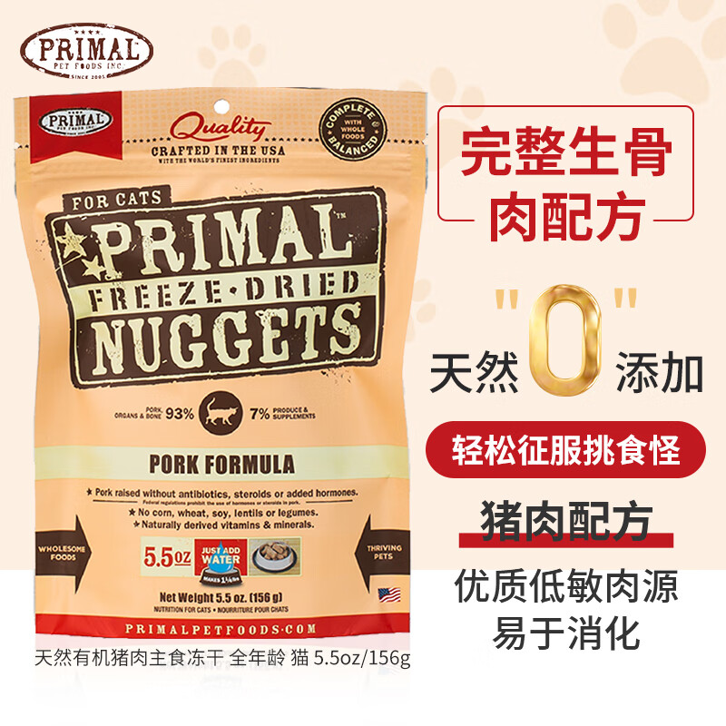 PRIMAL猫冻干主食猫咪生骨肉成幼猫pr冻干猫粮有机猪肉味156g