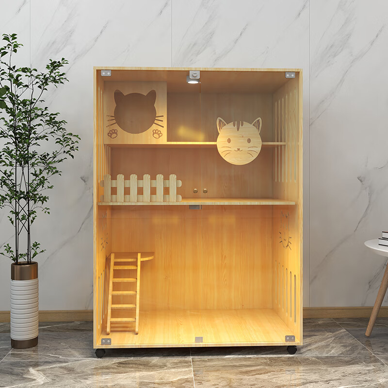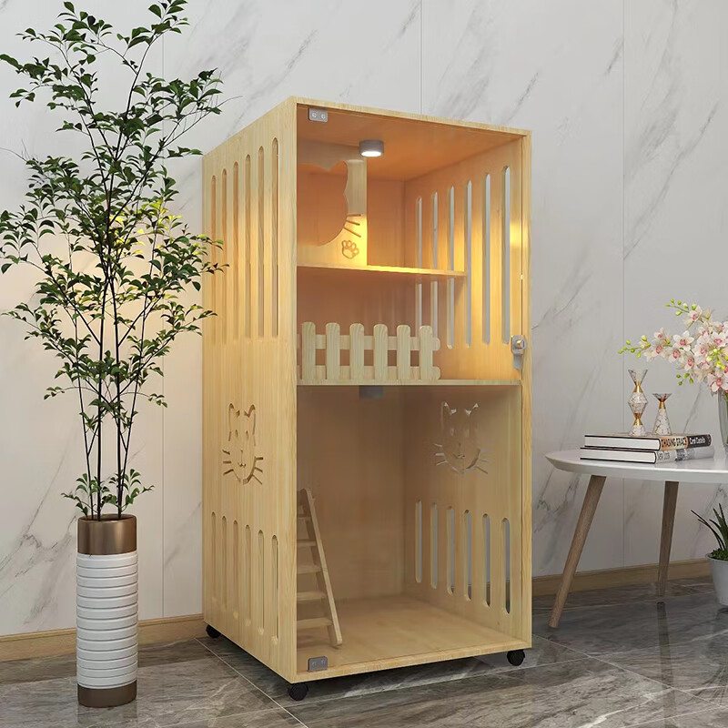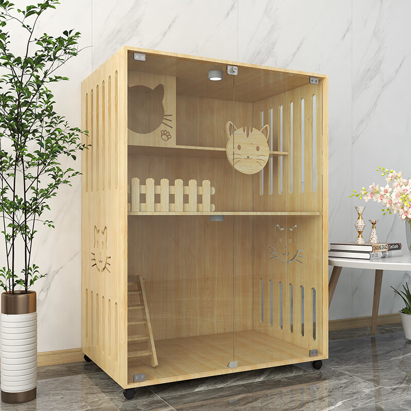 小米城堡猫窝猫别墅 木质猫笼双猫 家用木质猫笼超大自由空间室内豪华猫舍 M1-宽60高120深60 自行安装
