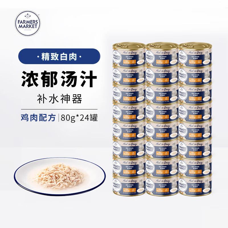 Farmers Market原装进口猫罐头成猫蓝宝食汤煮鸡肉配方白肉湿粮80g*24罐整箱装