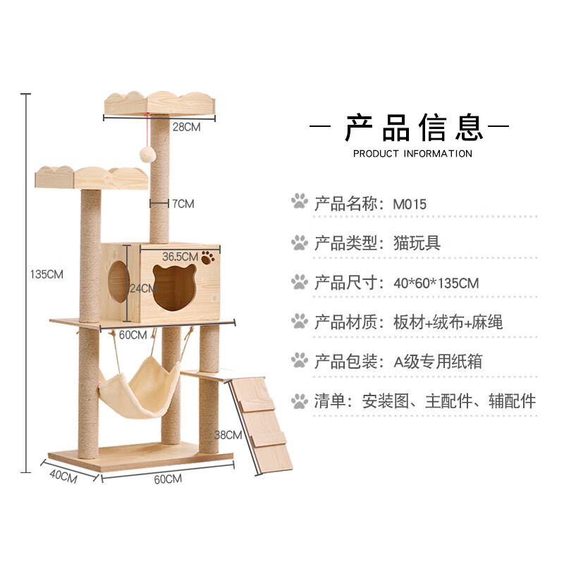 跃越(yueyue) 猫爬架猫窝猫树一体大型猫抓柱猫玩具猫跳台多层别墅猫咪爬架用品 M015