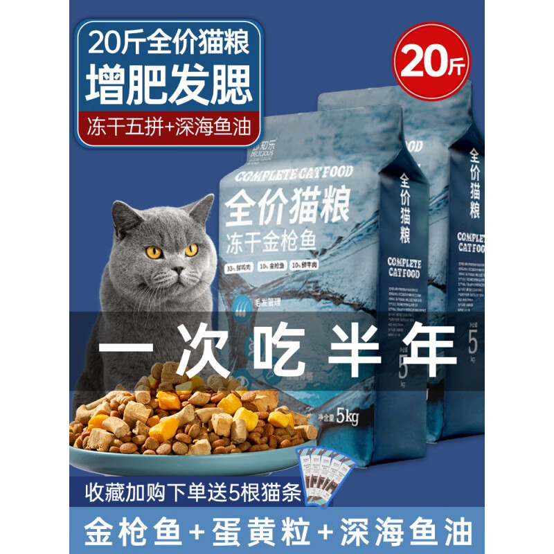 猫粮20斤装 冻干全价10kg成猫幼猫生骨肉增肥发腮营养通用型大包 10kg 【呵护肠胃】(金枪鱼颗粒)双拼20斤装(赠益生菌
