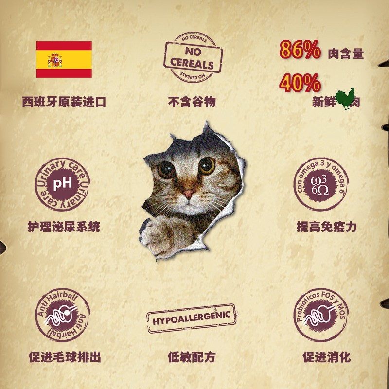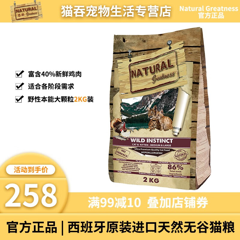 西班牙原装进口Natural Greatness NG恩萃野性天然幼成猫粮全价英短蓝猫布偶猫粮 野性本能大颗粒2kg 全期猫粮 全年龄段