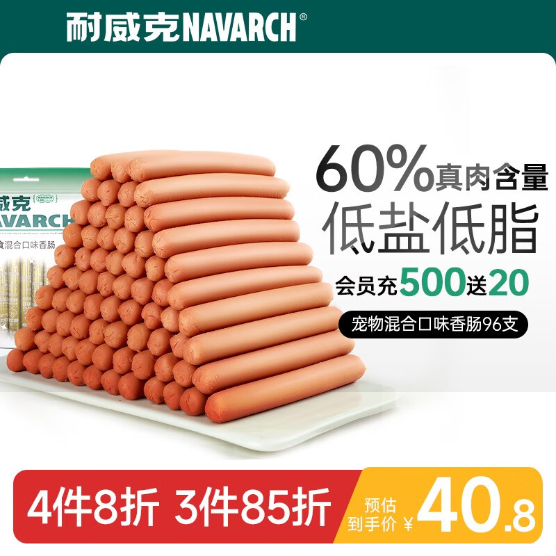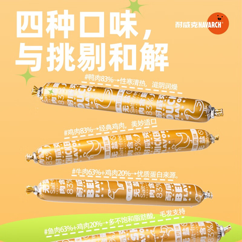 霆特耐威克狗零食火腿香肠泰迪金毛柴犬训练宠物零食96支 混合口味丨8 动物性原料