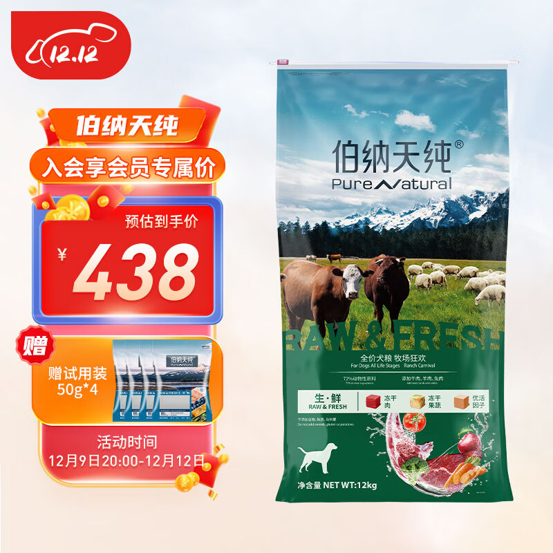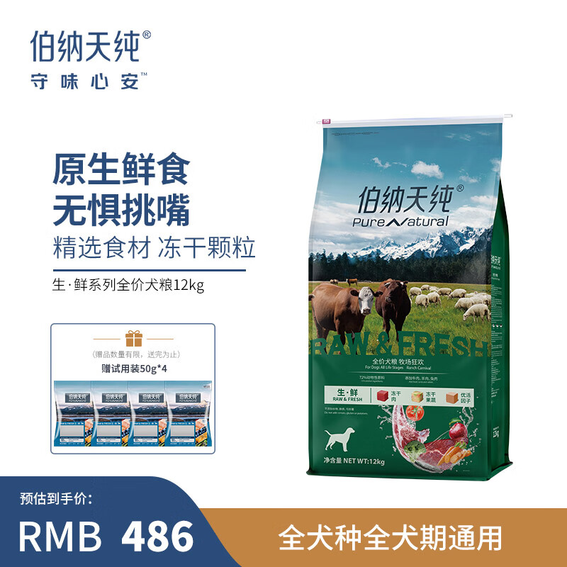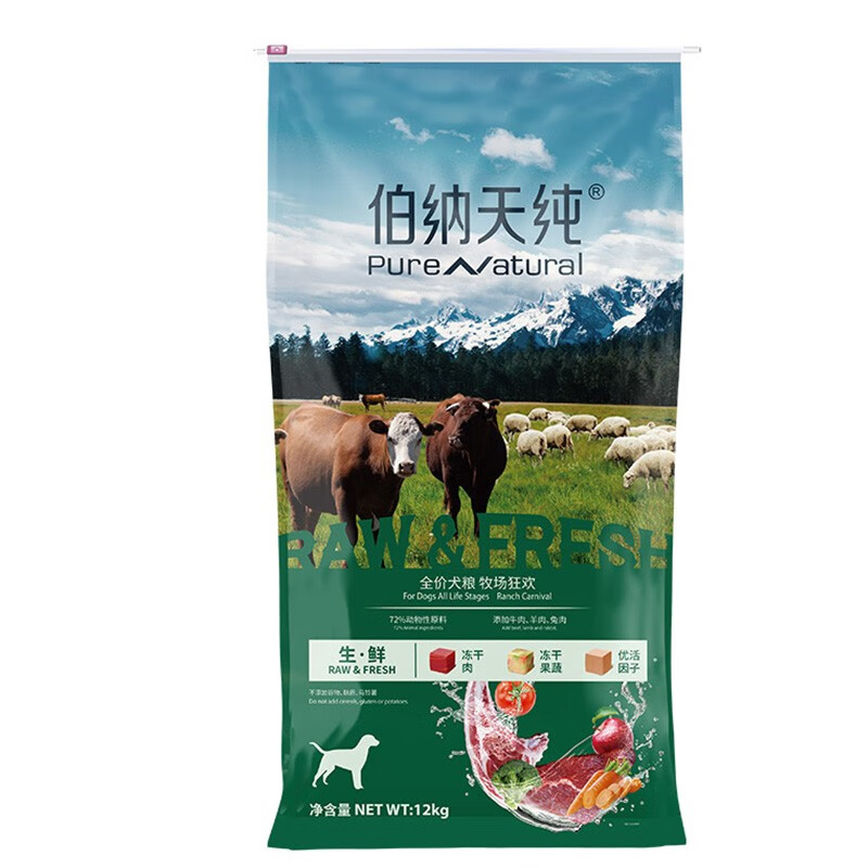 伯纳天纯冻干粮三种肉成犬幼犬中大型小型犬通用牧场狂欢狗粮牛肉羊肉兔肉 0谷物通用款三种肉12kg