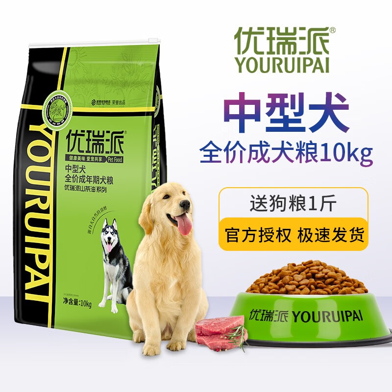 优瑞派狗粮 中型犬专用萨摩耶哈士奇金毛通用型 成犬10kg20斤