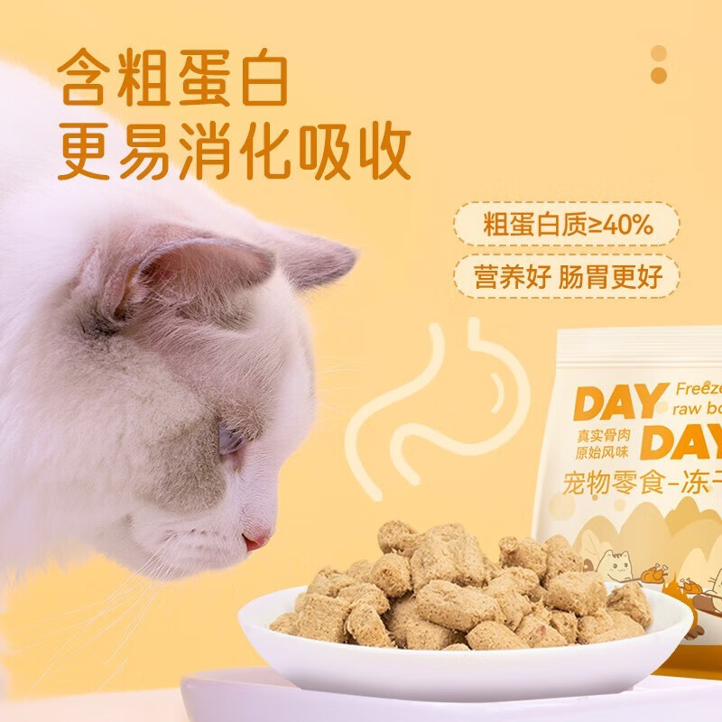 路斯(Luscious)冻干猫零食鸡肉粒大包装成猫幼猫拌粮猫零食可复水鸡胸肉磨牙解馋 【性价比装】金多乐生骨肉500g