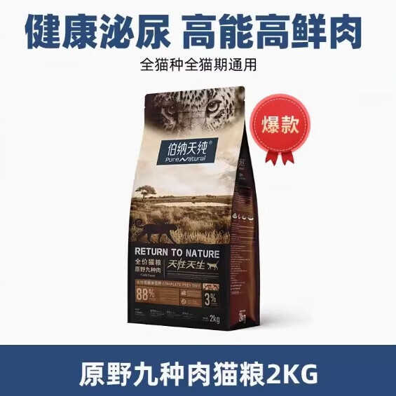 伯纳天纯九种肉六种鱼猫粮 成猫幼猫全猫种全猫期蓝猫英短猫粮2kg 原野九种肉猫粮(升级款) 2kg