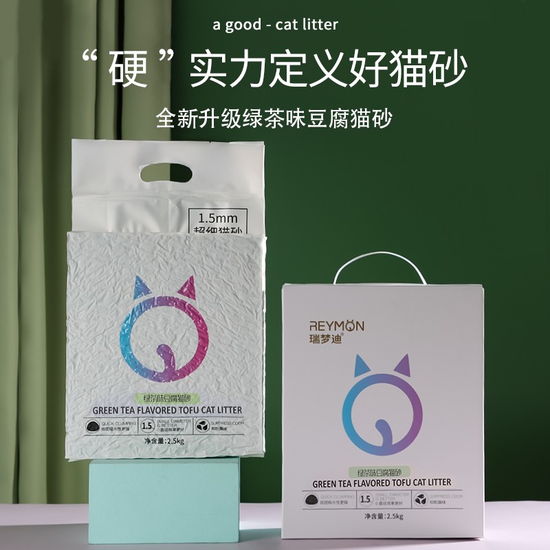 瑞梦 1.5mm绿茶味豆腐猫砂除臭升级高效结团无尘猫咪用品2.5kg
