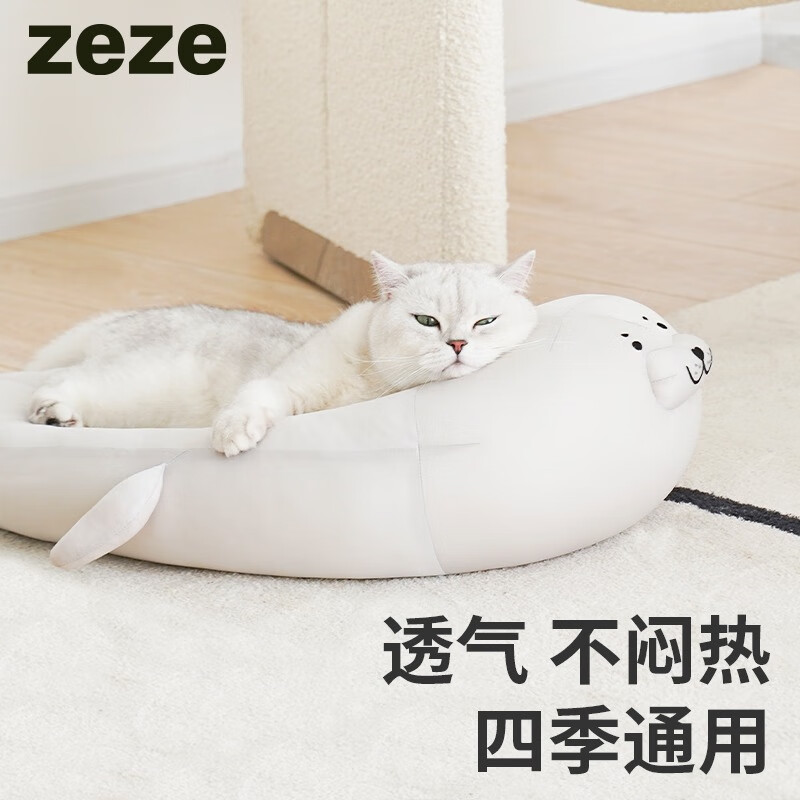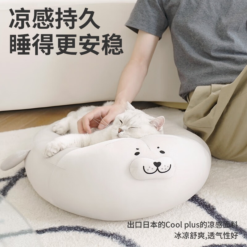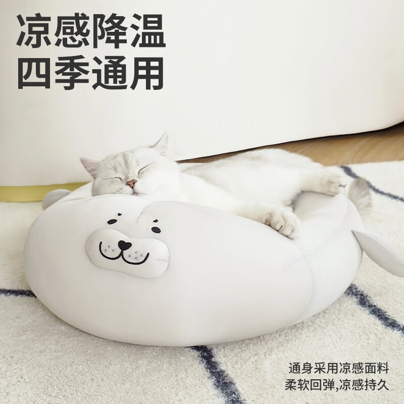 ZEZE猫窝海豹冰丝窝夏季凉窝高低弧度可枕猫垫子 加大款海豹凉窝(40斤内狗狗适用)