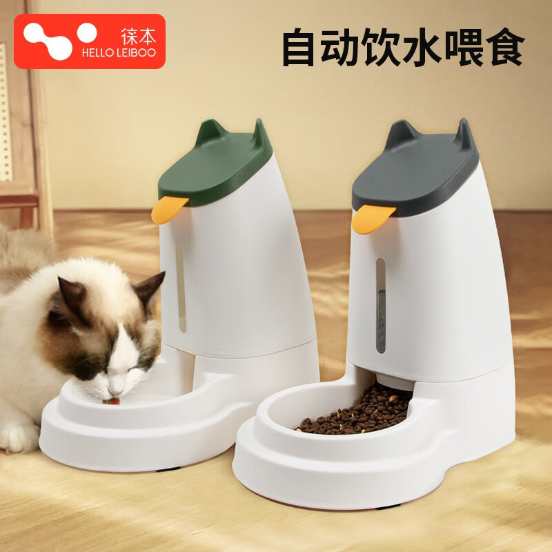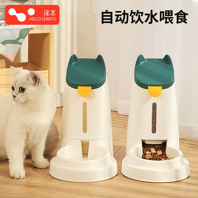 HELLOLEIBOO徕本 宠物自动喂食器猫咪饮水机一体大容量不插电流动喝水猫碗 绿色喂食器