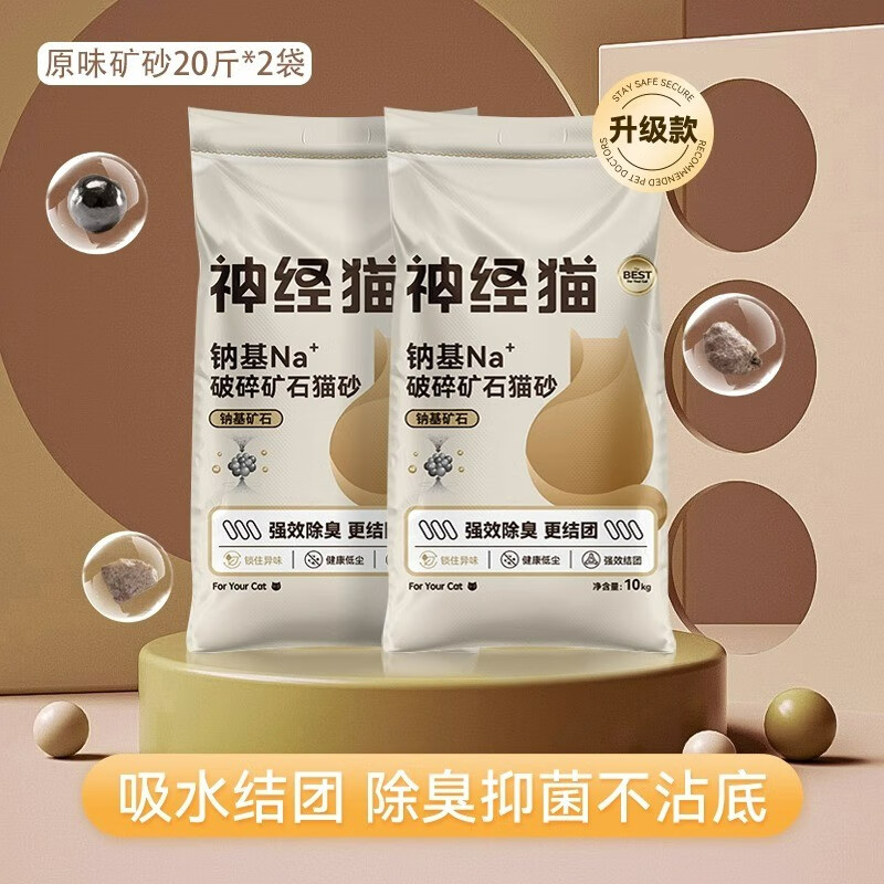 酸熊膨润土猫砂除臭活性炭混合猫砂绿茶豆腐除臭去味实惠装矿砂低尘 钠基矿砂40斤 斤