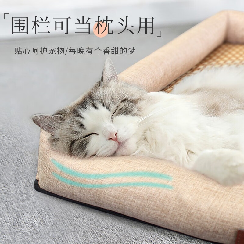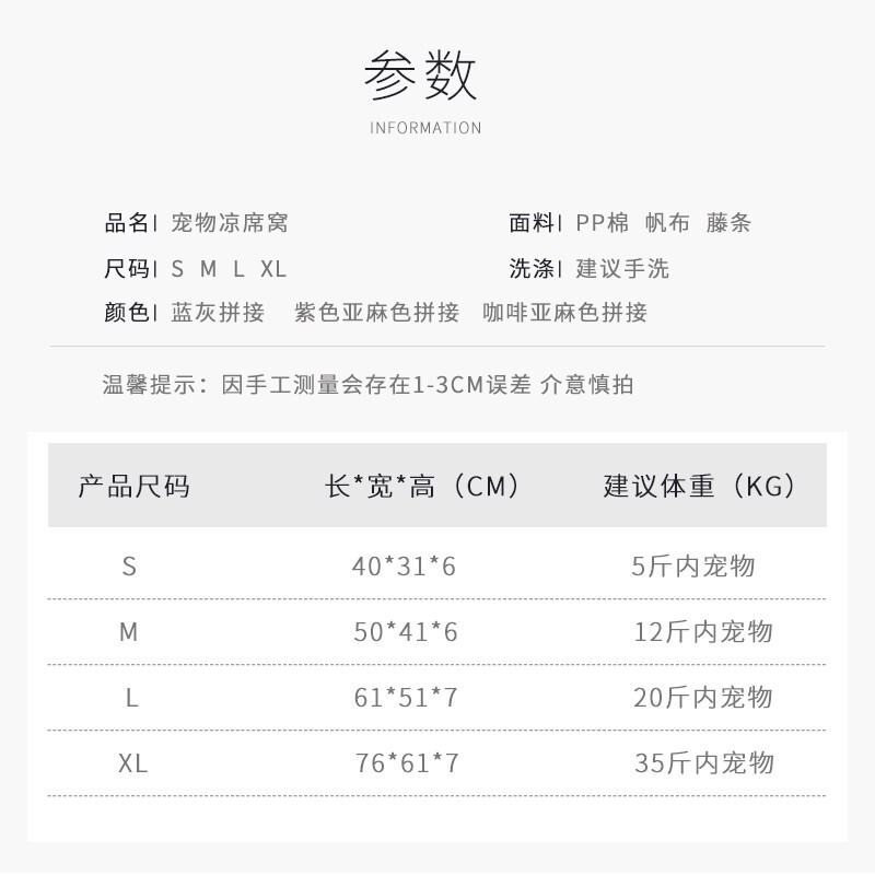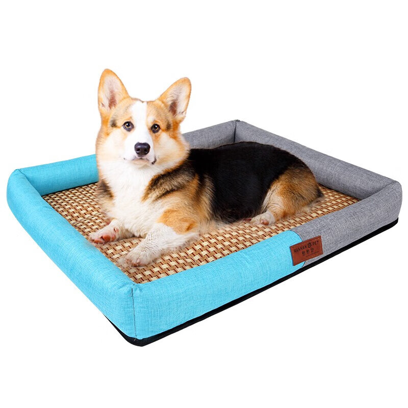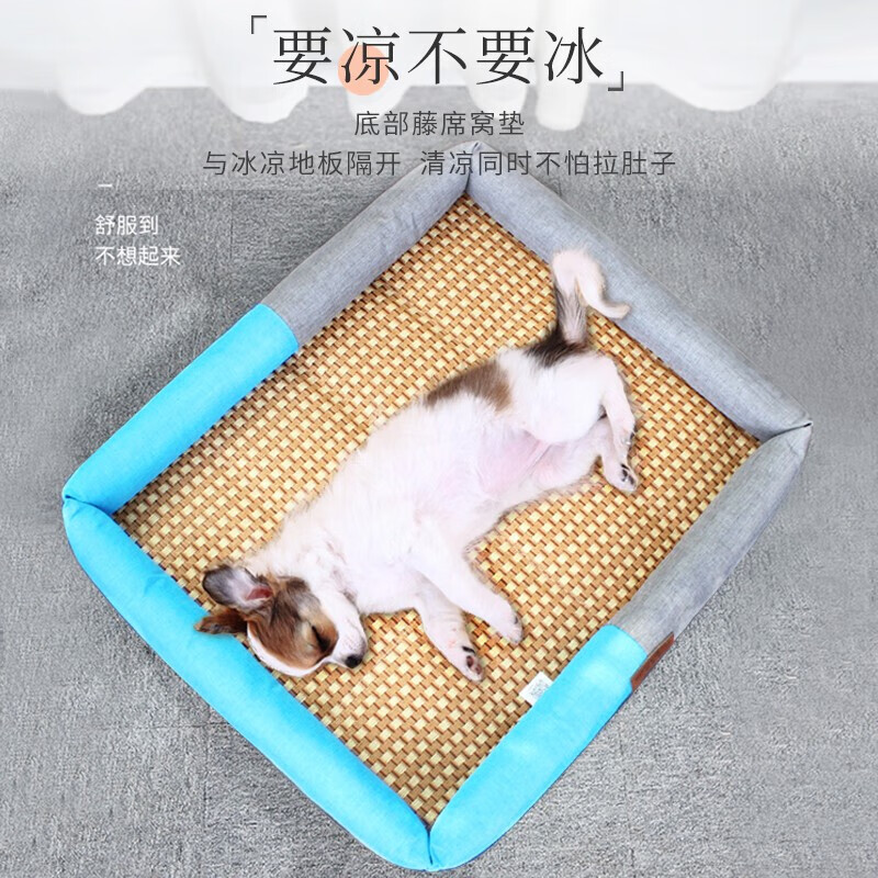 狗窝猫窝 夏季宠物狗床凉垫子泰迪金毛狗窝小型犬中型犬狗屋狗舍用品 蓝色灰色拼接 S号40*31*6cm适合5斤内宠物使用