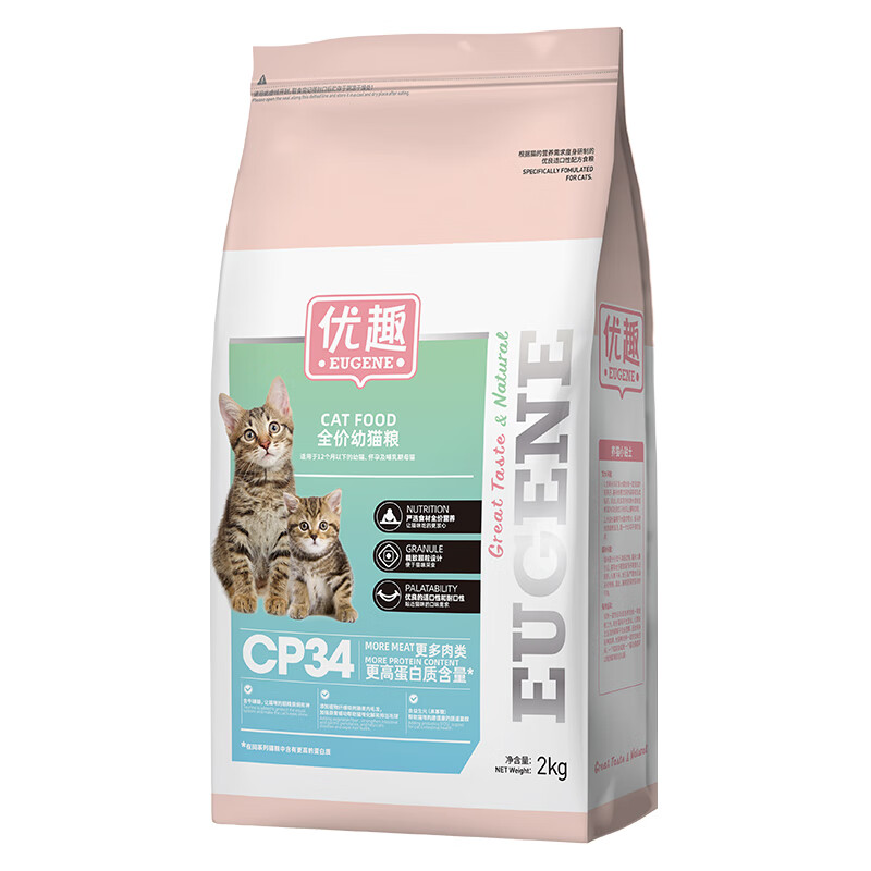优趣猫粮升级款34%更高蛋白70%动物源性成分天然无谷全价幼猫粮2KG4斤 【34%高蛋白】无谷幼猫粮 2kg 1岁以下幼猫