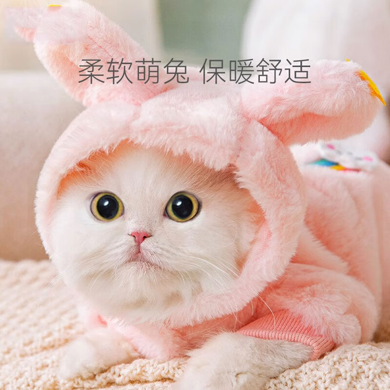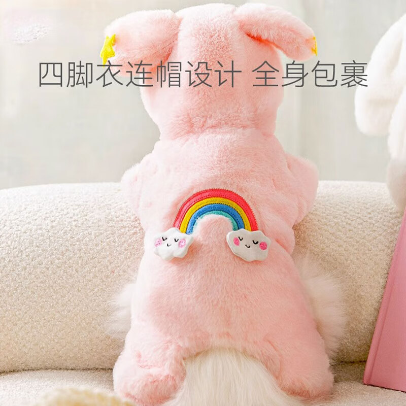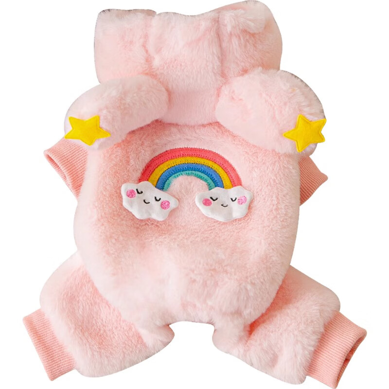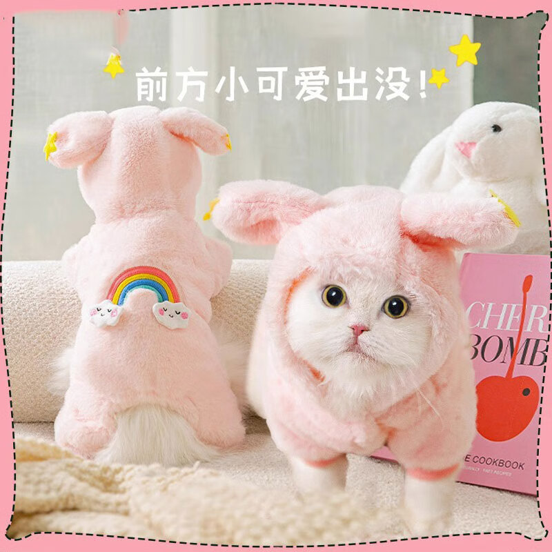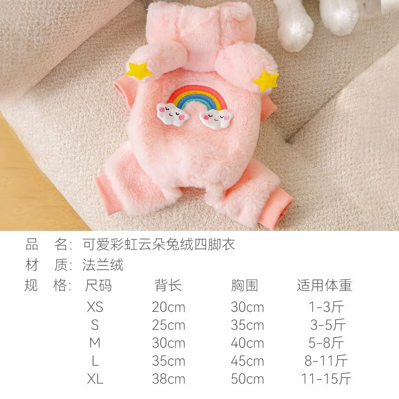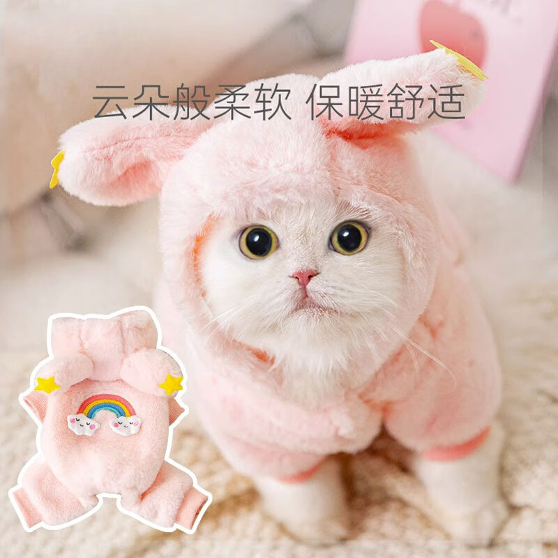 猫米小猫咪衣服冬法兰绒云朵萌兔幼猫猫布偶猫蓝猫宠物服装防掉毛冬季 粉色彩虹 XS(建议1-3斤)