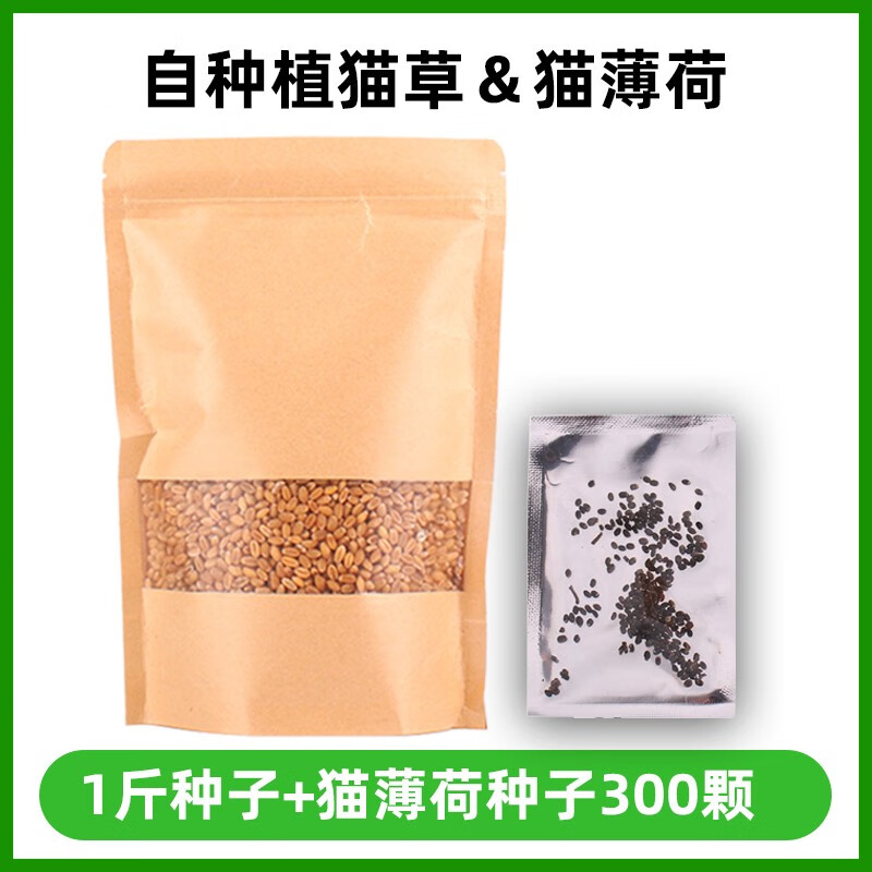 潭小禾猫草种子小麦土种植猫咪零食200g猫草套装草籽培水培懒人盆栽 1斤种子 猫薄荷种子300颗