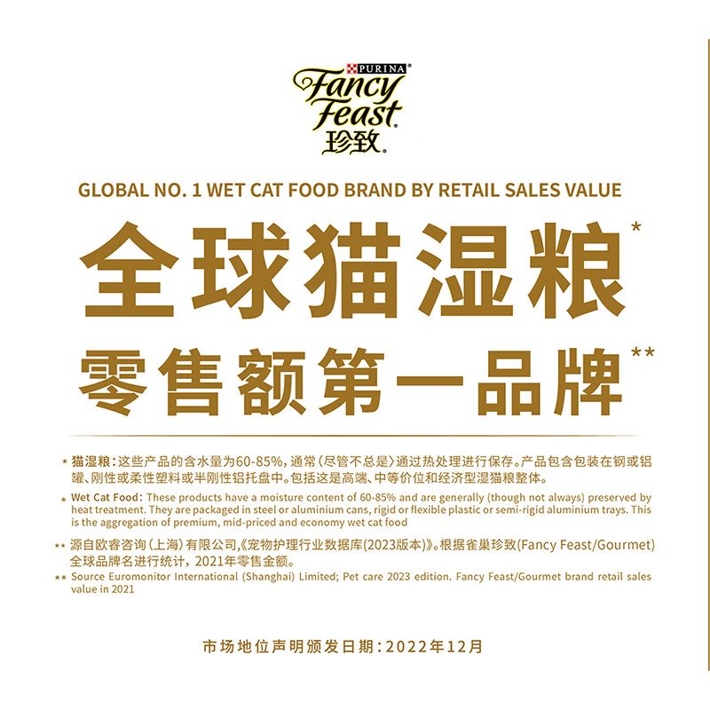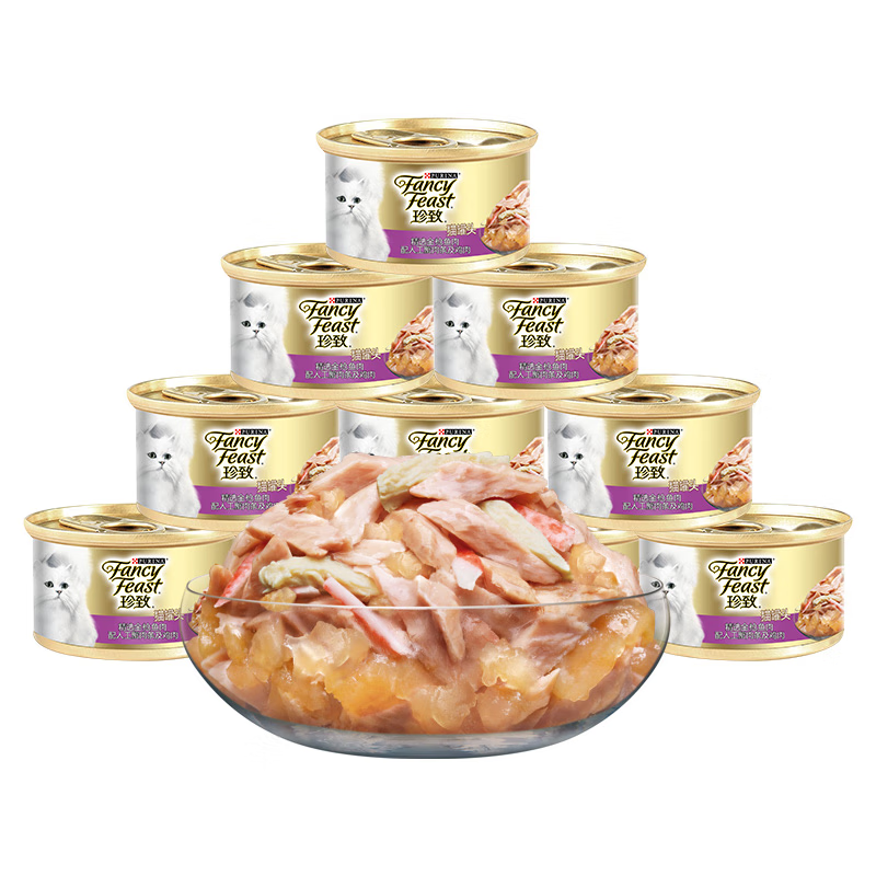 珍致(FancyFeast)猫罐头 金罐85g 金枪鱼肉配蟹柳棒及鸡肉 12罐