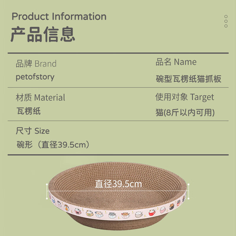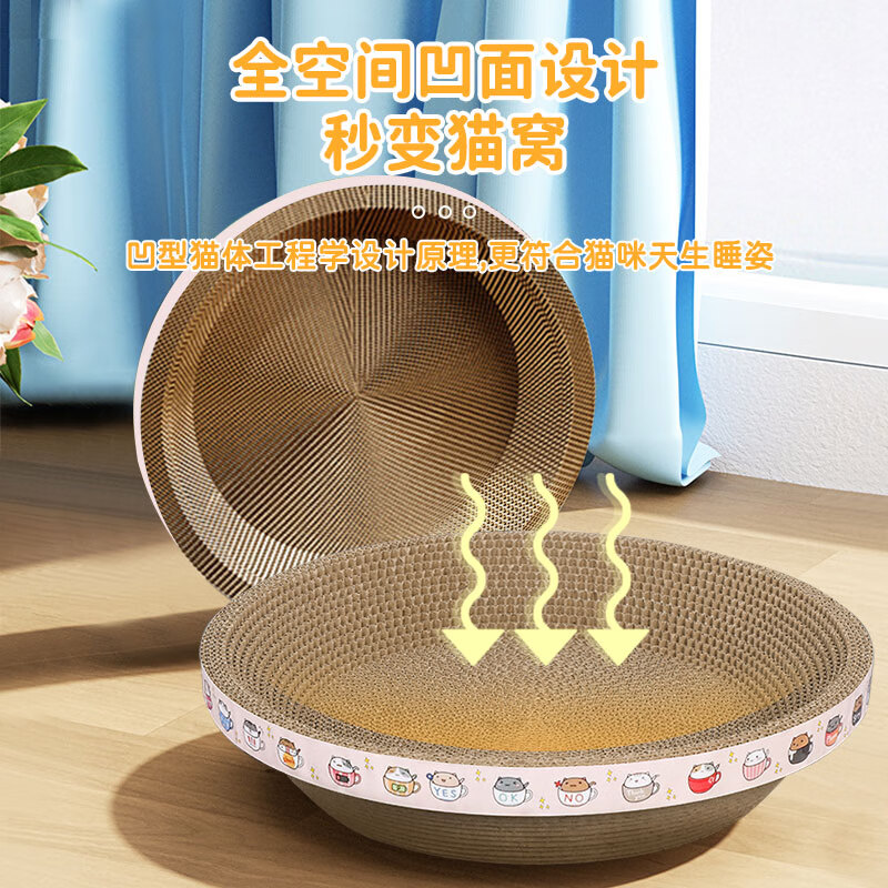 petofstory猫抓板圆形猫玩具宠物猫咪玩具猫爪板窝大号 耐抓大碗型瓦楞纸 磨抓逗幼猫窝夏季剑麻