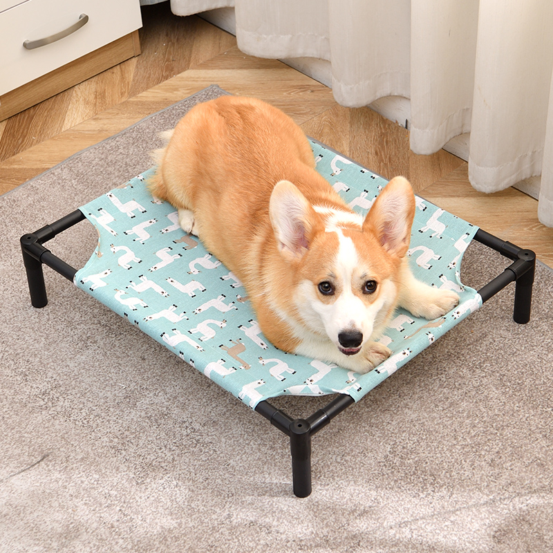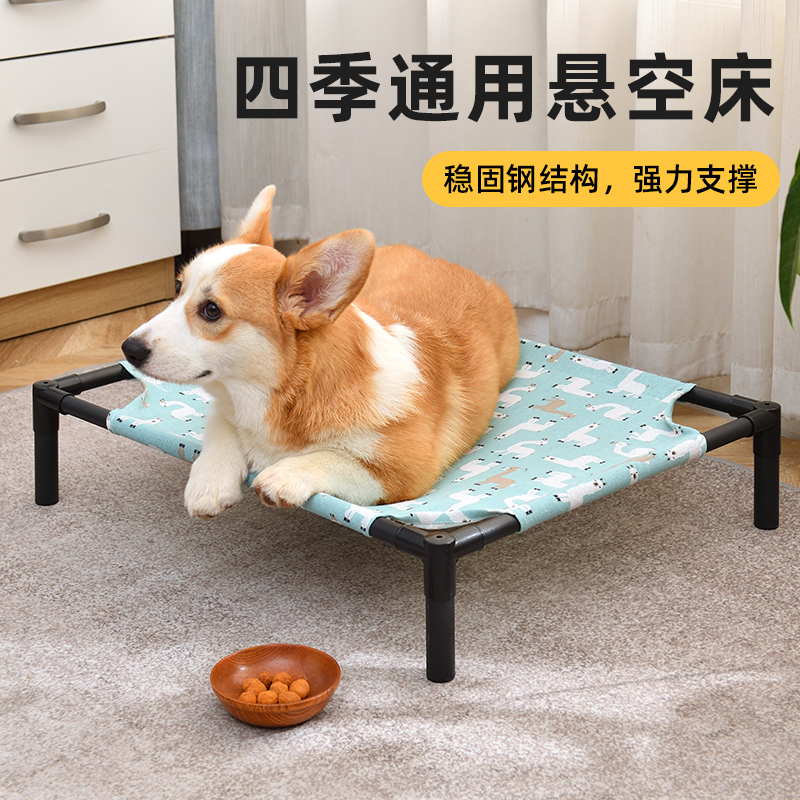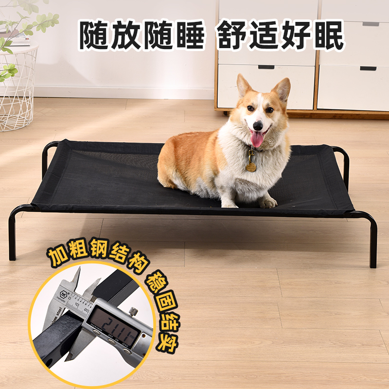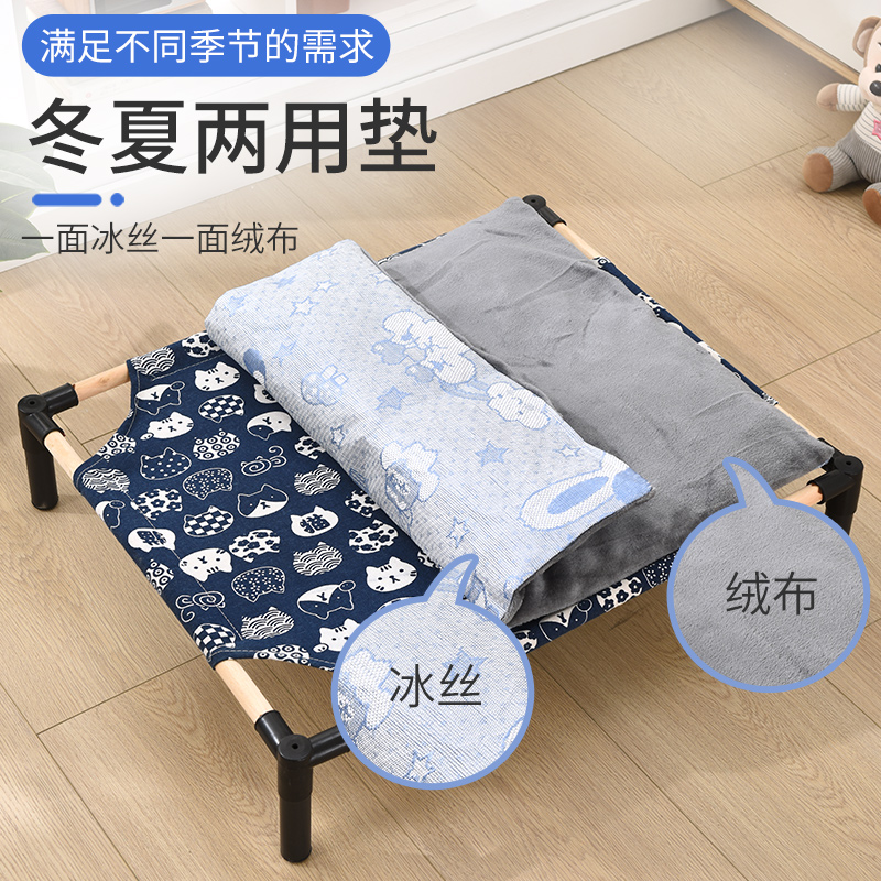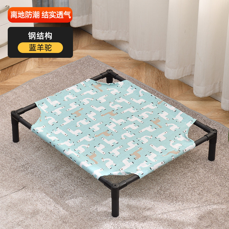 狗窝夏季猫窝四季通用狗床离地大型犬夏天凉窝可拆洗行军床宠物床 纯钢架款-蓝羊驼 60*50*13cm含1块床布 凉席【适用于30斤