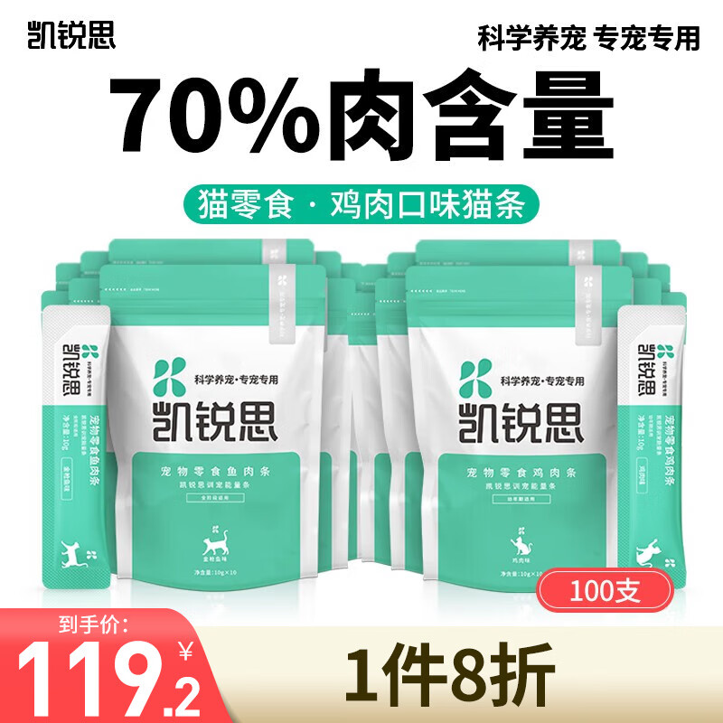 凯锐思猫咪猫条鱼肉鸡肉全阶段孕猫增肥发腮专用营养食品猫零食 【混合口味】100支