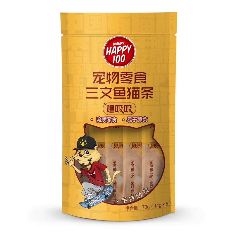 顽皮(Wanpy)猫条猫零食 成猫幼猫整箱补水流质湿粮 噜吸吸|三文鱼口味(14g*100支)
