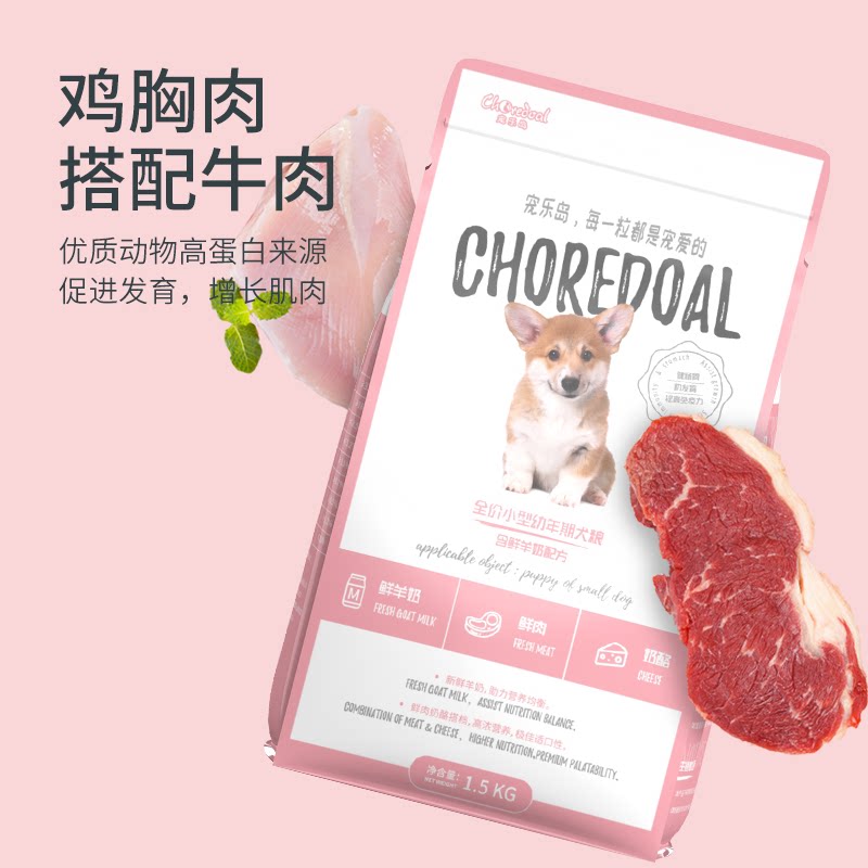 CHOREDOAL幼犬粮宠乐岛羊奶配方奶糕小狗通用型无谷离乳期狗粮3斤