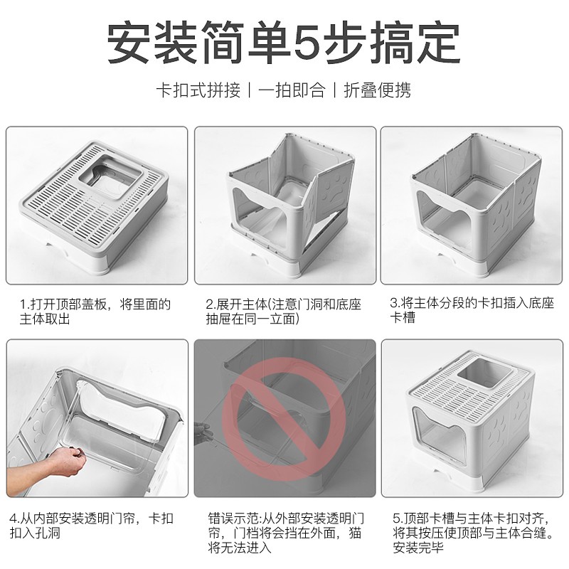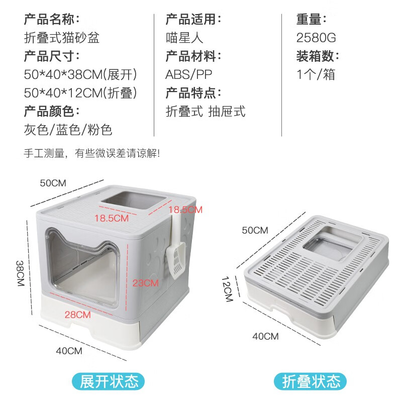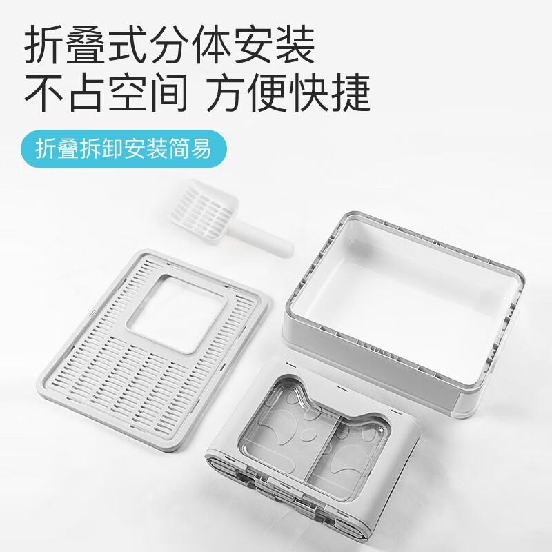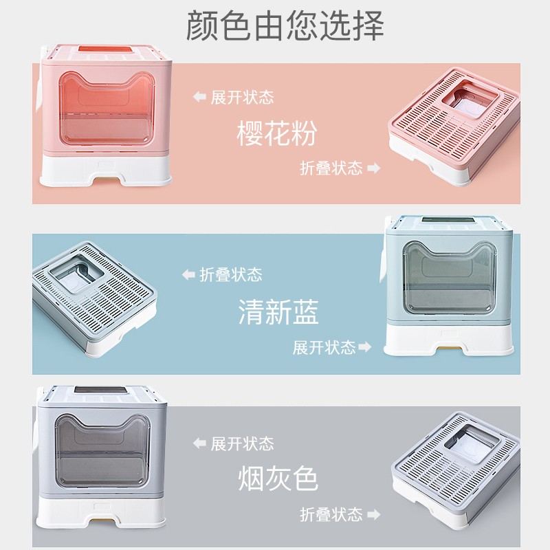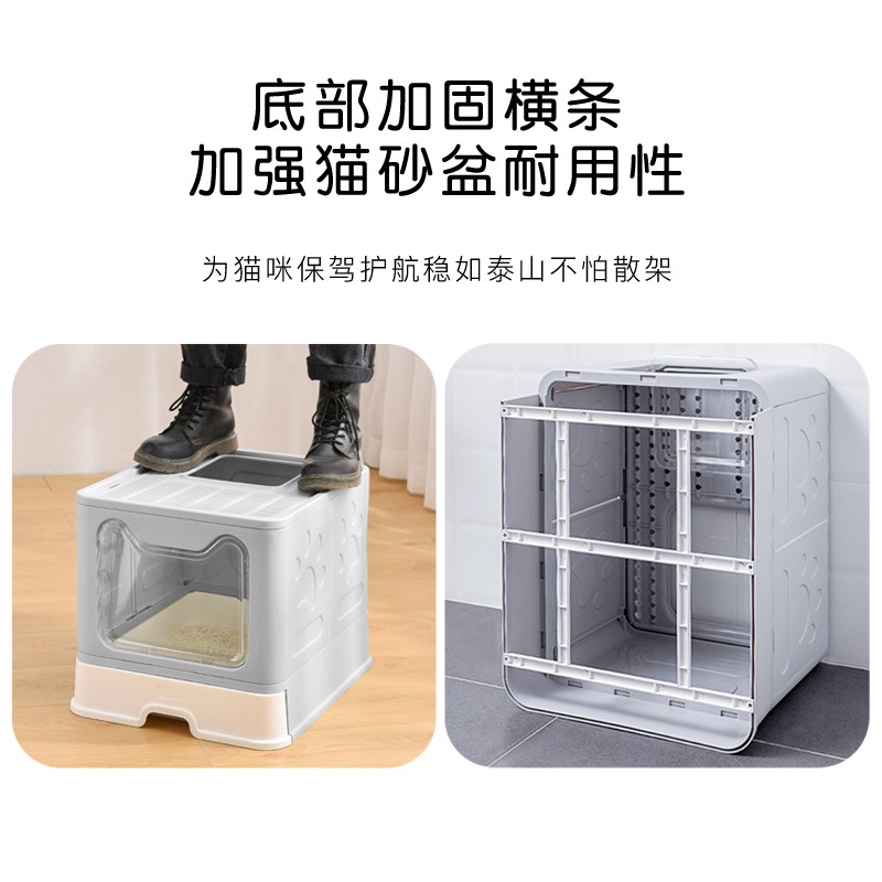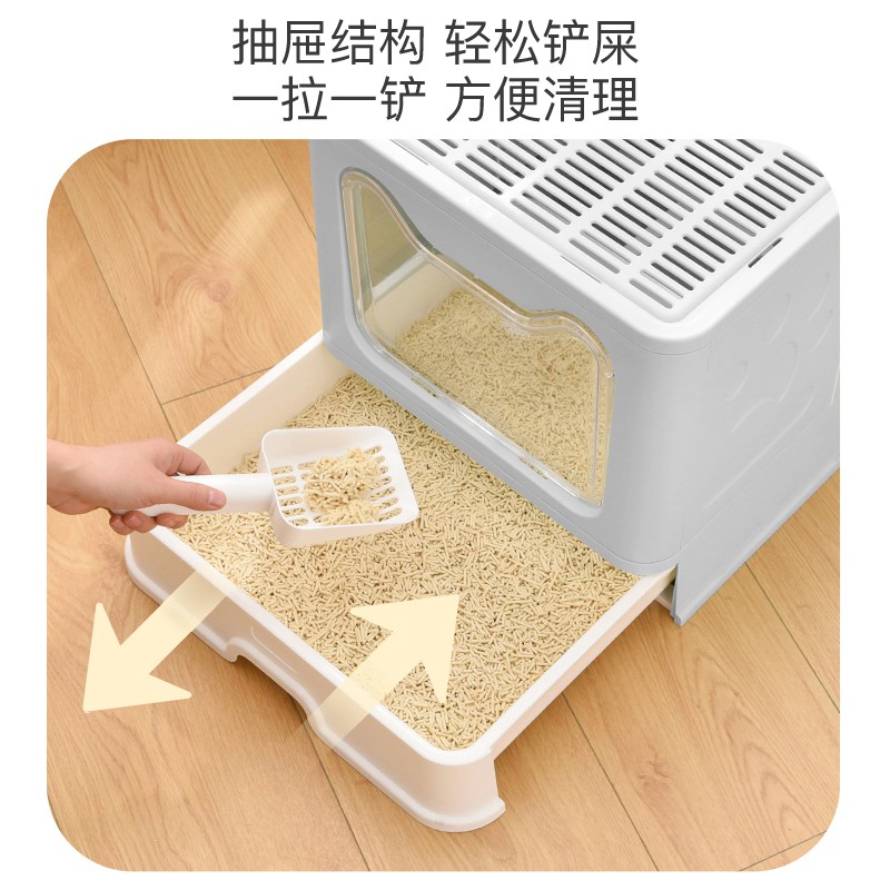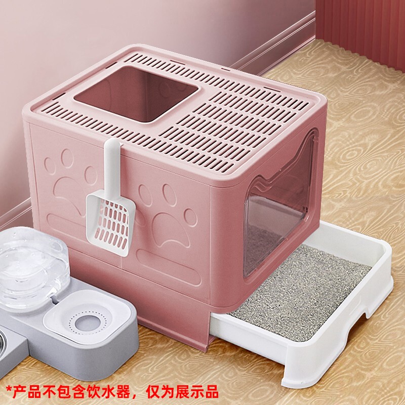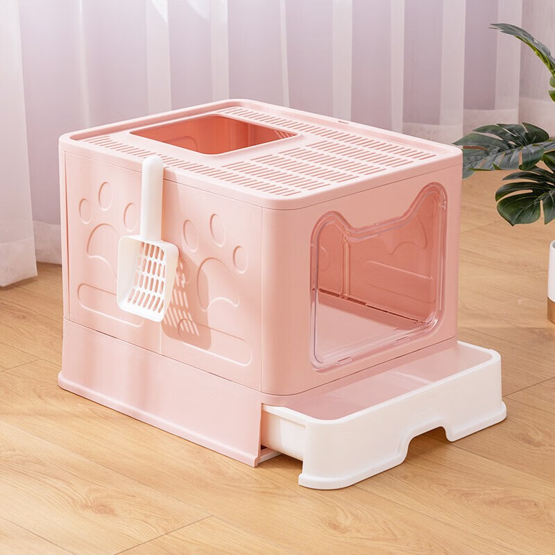 茨格曼 可折叠猫砂盆大号封闭式猫厕所抽屉式猫沙盆猫食盆顶入式防外溅超大号 樱花粉【贈猫砂铲】第三代升级加厚 不含碗 特大号【50cm*40cm*38cm】