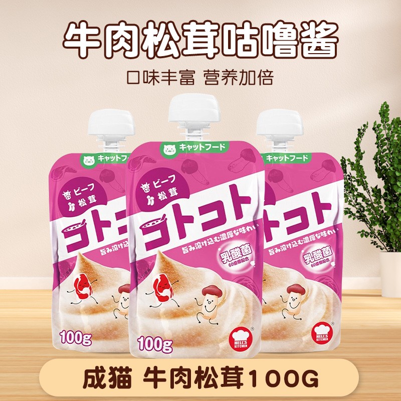 地狱厨房咕咕酱鱼肉猫咪猫营养拌饭增肥成猫幼猫湿粮零食 成猫 牛肉松茸100g 1个