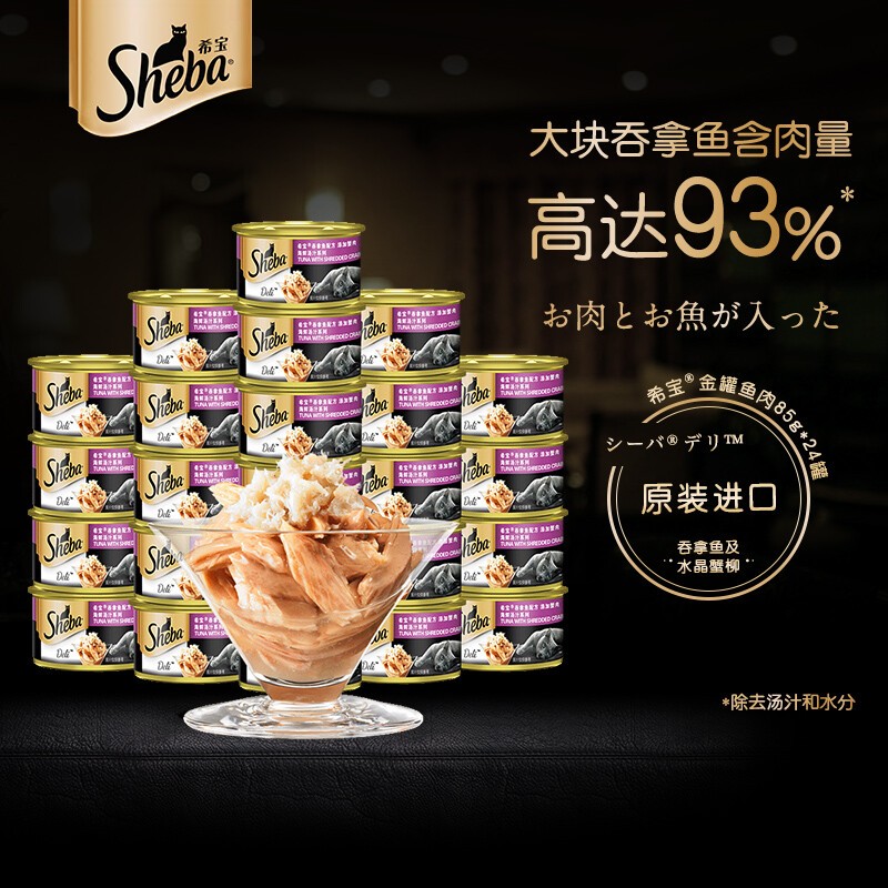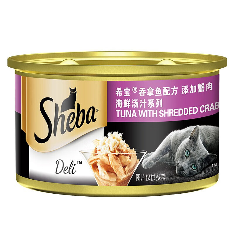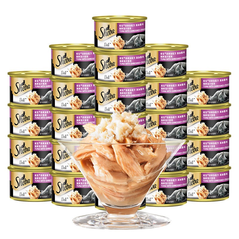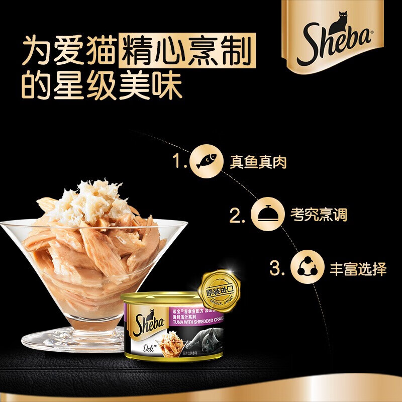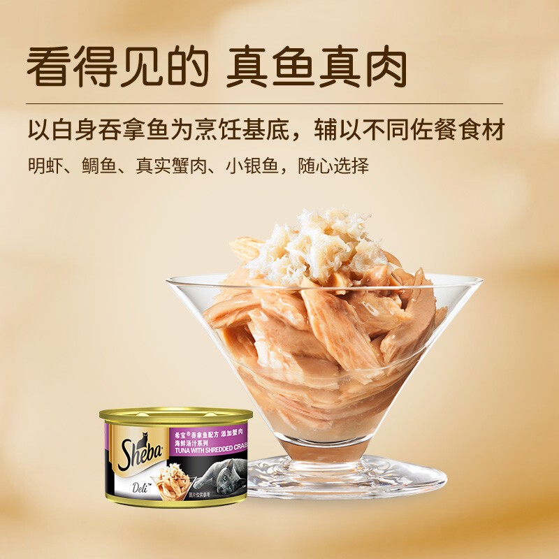 希宝(Sheba)猫罐头泰国进口金罐白肉猫咪零食营养增肥发腮成幼猫湿粮包拌粮 汤汁-吞拿鱼蟹柳85g*6罐