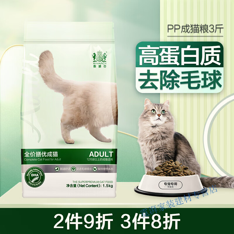 耐威克猫粮成猫英短波斯猫咪通用天然粮主粮去毛球小包装 PP成猫粮3斤 1.5kg