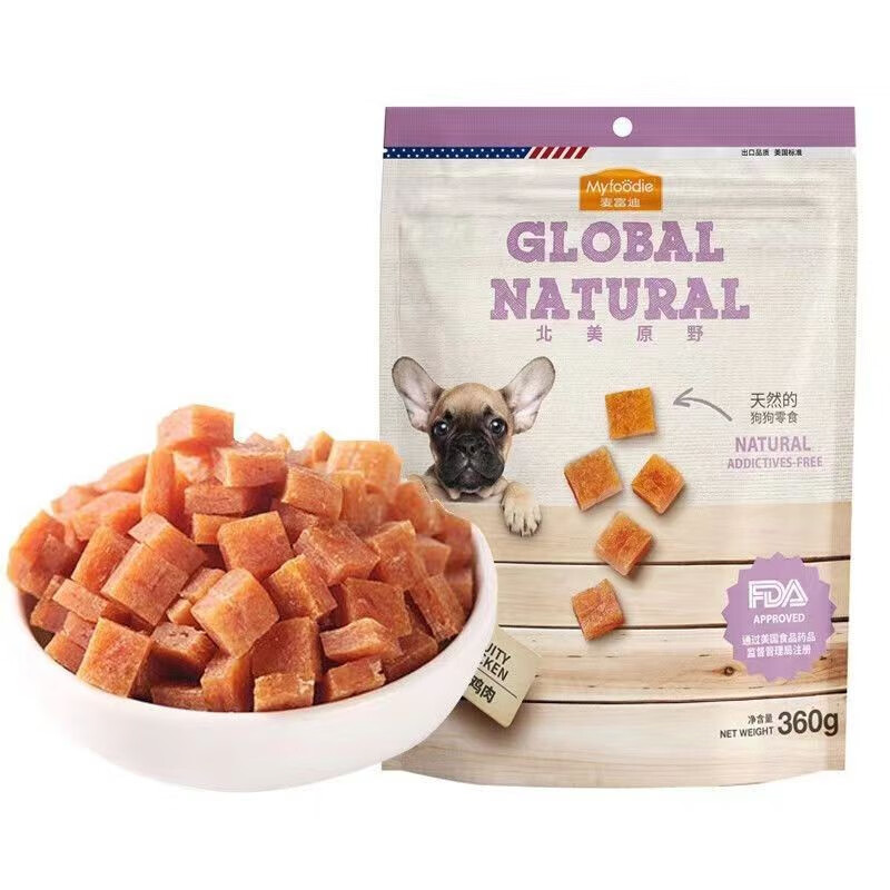 麦富迪(Myfoodie)狗狗零食北美原野系列磨牙解馋鸡鸭肉干比熊泰迪宠物训练奖励360g 果香鸡肉360g