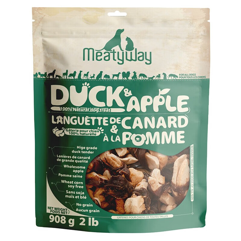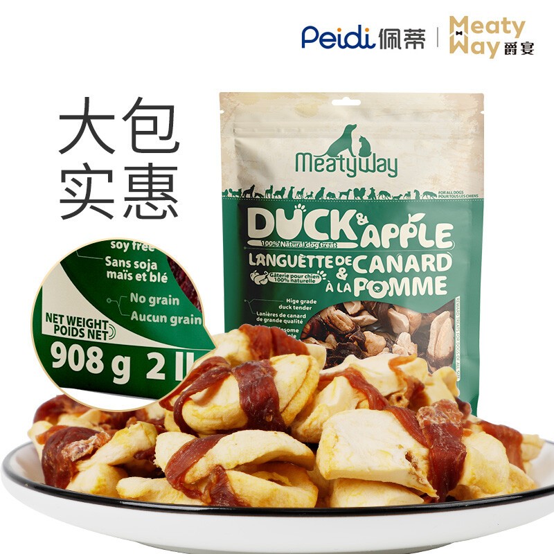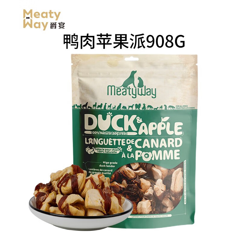 爵宴(MEATY WAY)狗零食甘薯鸭肉干 爵宴大包宠物狗狗训练奖励成犬幼犬吃通用 鸭肉苹果派908g