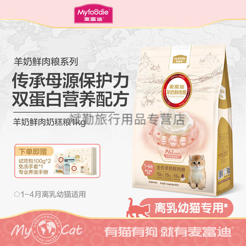 麦富迪羊奶鲜肉猫粮含生骨肉主食冻干高蛋白营养离乳奶糕幼猫专用 1kg 奶糕粮 【1-4月龄】