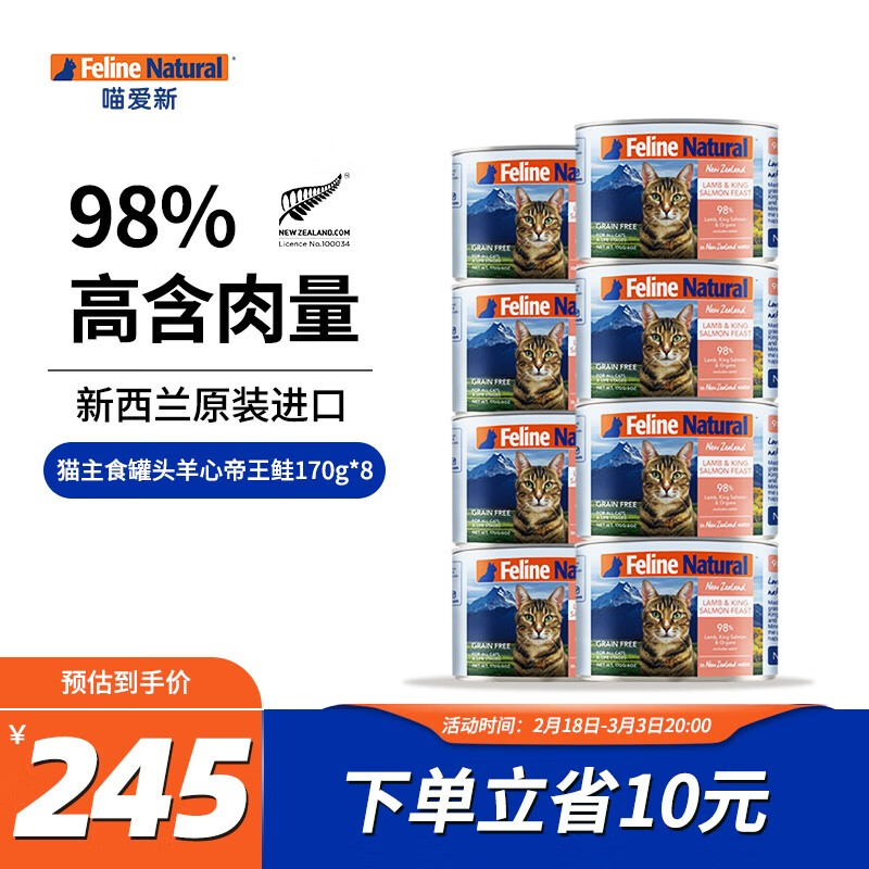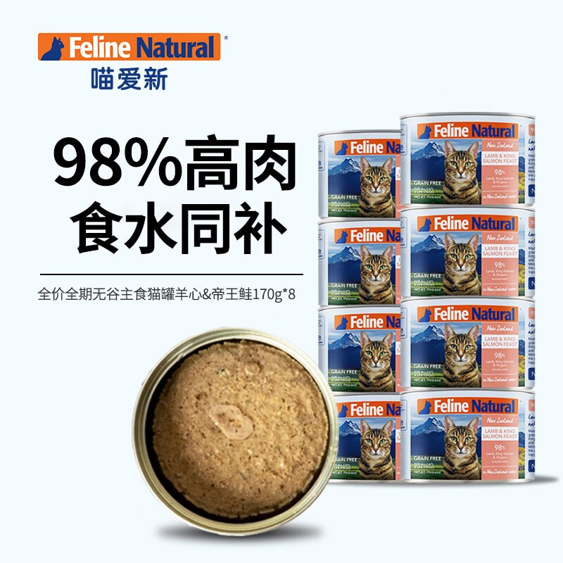 喵爱新(FELINE NATURAL)K9猫罐 新西兰原装进口成幼猫主食罐头 羊心帝王鲑170g*8