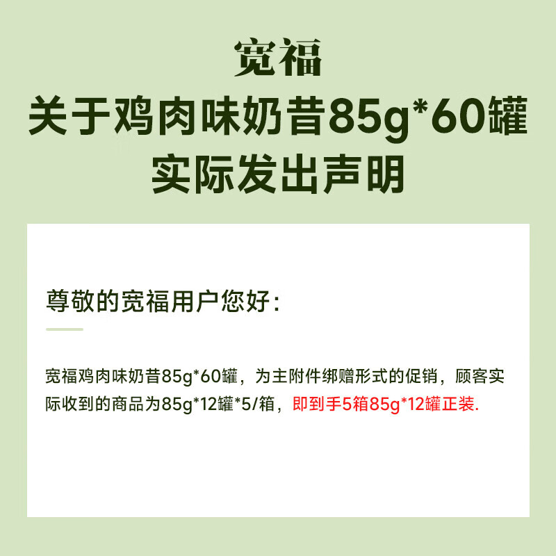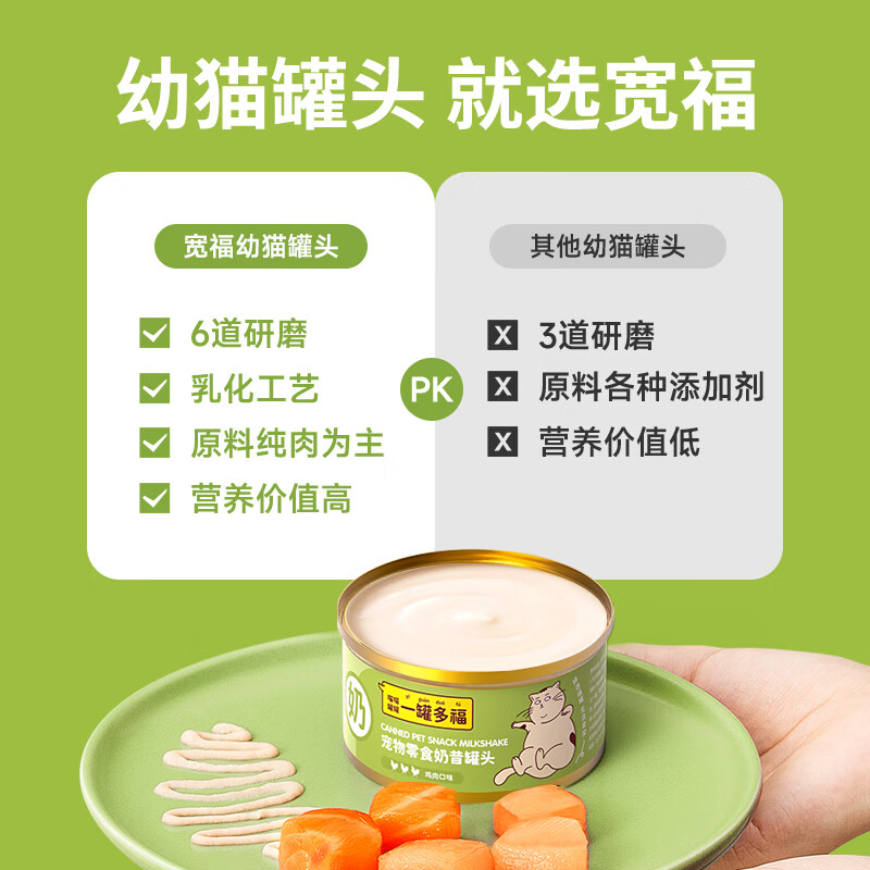 宽福(KUANFU)猫罐头奶昔预售鸡肉味85g*12罐*5件【含附件共60罐】
