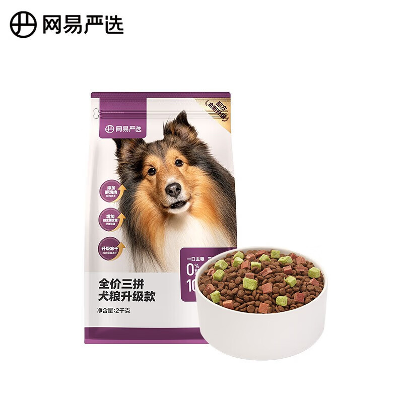 网易严选全价三拼犬粮 狗粮无谷物肉粒三文鱼牛肉鸡肉鸭肉柯基柴犬泰迪 【升级2.0款】2kg