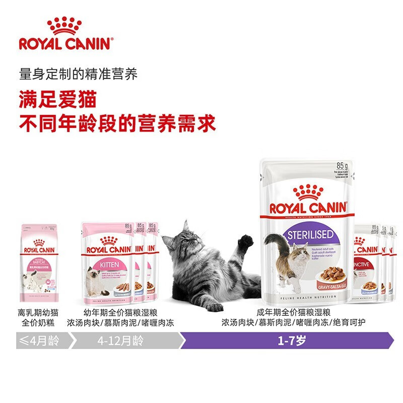 皇家猫粮(Royal Canin)猫粮猫罐头猫零食猫湿粮宠物猫主食软包通用 【付邮试用】成猫绝育浓汤85g