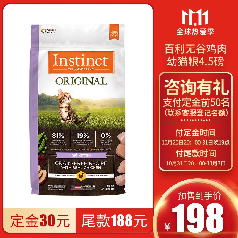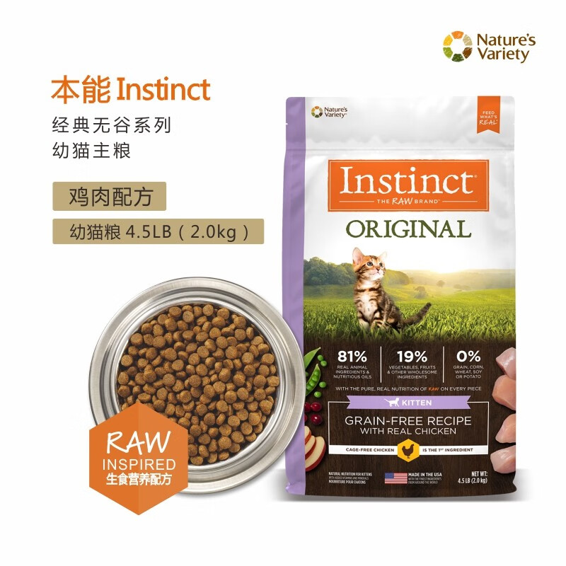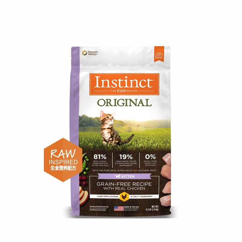 【防伪认证】Instinct生鲜本能(百利)猫粮天然无谷 美国进口 经典无谷 鸡肉配方全猫粮 经典无谷鸡肉幼猫粮4.5磅【预售有礼】