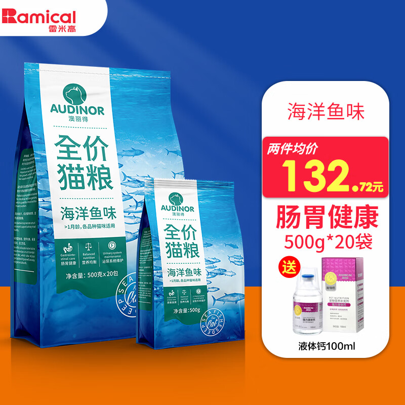雷米高(RAMICAL)猫粮10kg20斤成猫幼猫粮海洋鱼味 通用型 500g*20包(金装升级)
